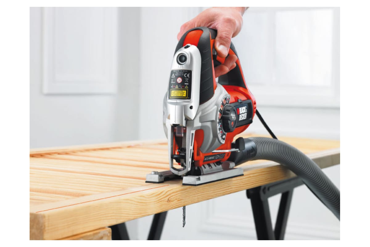 Лобзик Black & Decker KS 950 SLK относится к новому поколению инструментов с мощными двигателями и множеством инновационных функций. Применяются для различных задач при работе с деревом, пластиком и металлом. В основном, это криволинейные разрезы материала и сложный фигурный раскрой больших деталей. Для более точного позиционирования в данной модели предусмотрен лазерный указатель. Поворачивающееся пильное полотно на 360 дает возможность проводить работы любой сложности.
