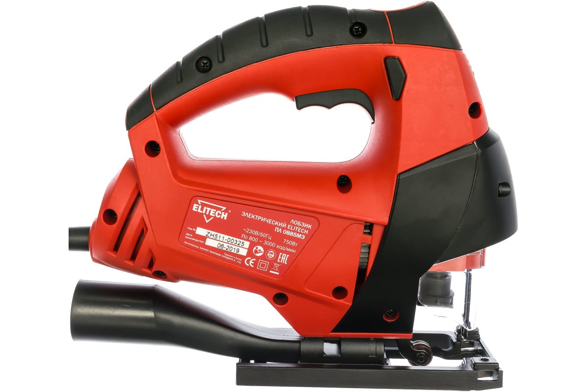 Лобзик Elitech ПЛ 0885МЭ используется для резки деревянных, пластмассовых, металлических заготовок. С помощью клавиши-фиксатора можно заблокировать пусковую кнопку в рабочем положении, что исключает необходимость постоянно держать на ней палец. Пылеотвод с функцией подключения пылесоса обеспечивает чистоту рабочего пространства и защиту органов дыхания оператора от мелкой пыли. Наличие защитного экрана предотвращает соскальзывание пальцев оператора в зону распила.