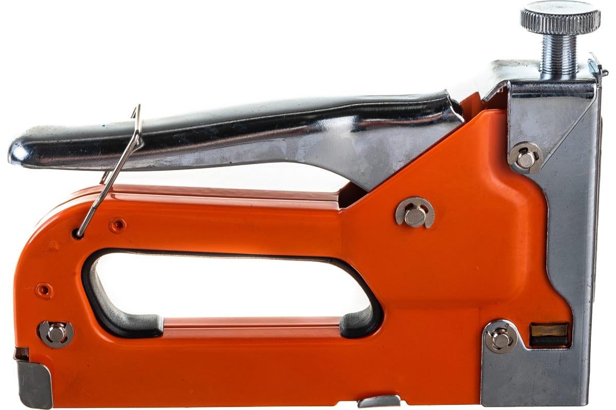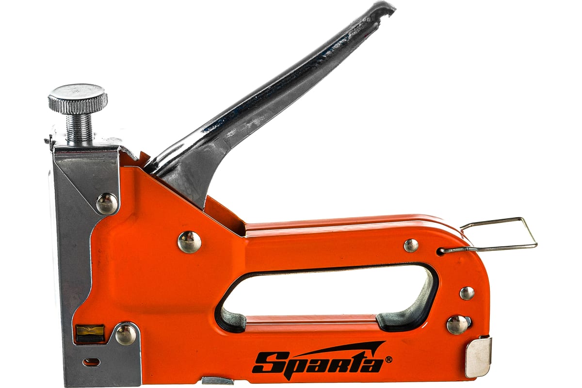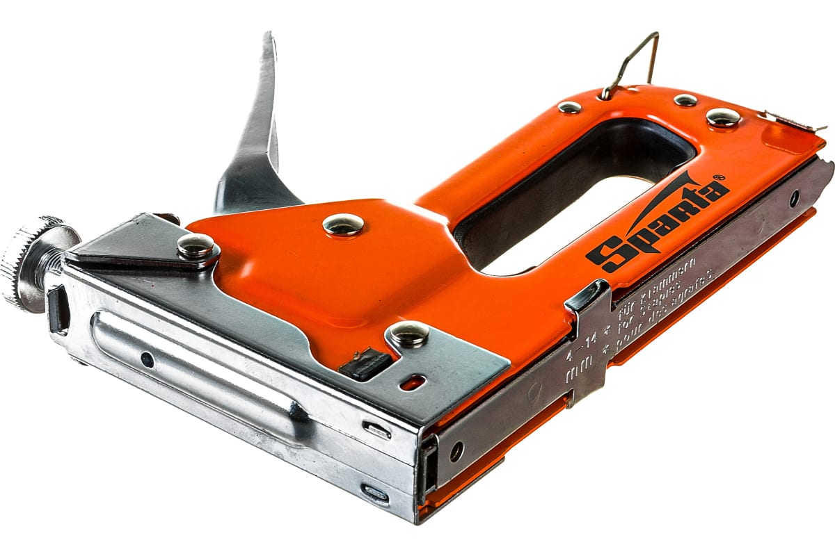 Регулируемый мебельный степлер Sparta 42002 с скобами 200 шт. работает с крепежами типа 53 размером 4-14 мм и используется для быстрого крепления на деревянном основании фанеры, оргалита, ДВП, ДСП, утеплителя, пленки и других листовых материалов. Штампованный стальной корпус обладает высокой прочностью, что увеличивает срок службы инструмента. С помощью степлера можно собрать шкаф, перетянуть мягкую мебель, смонтировать утеплитель и выполнить другие крепежные работы.