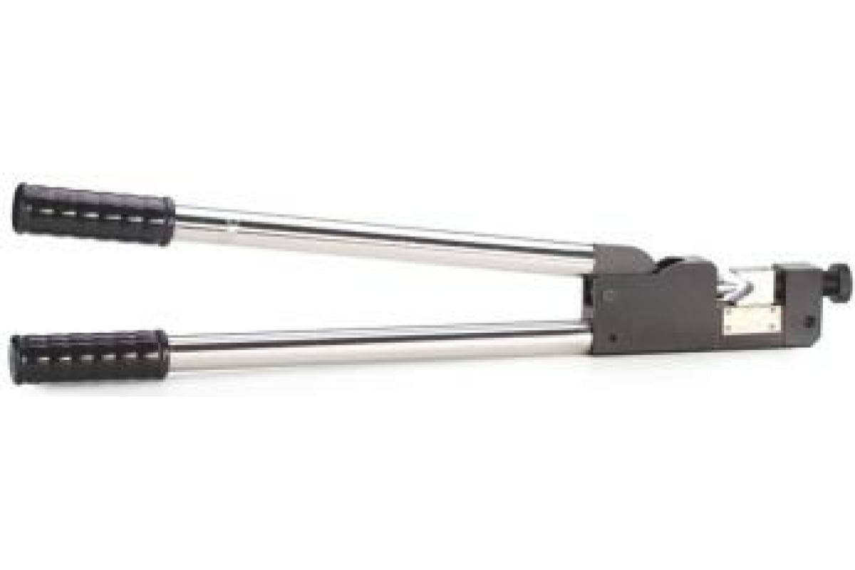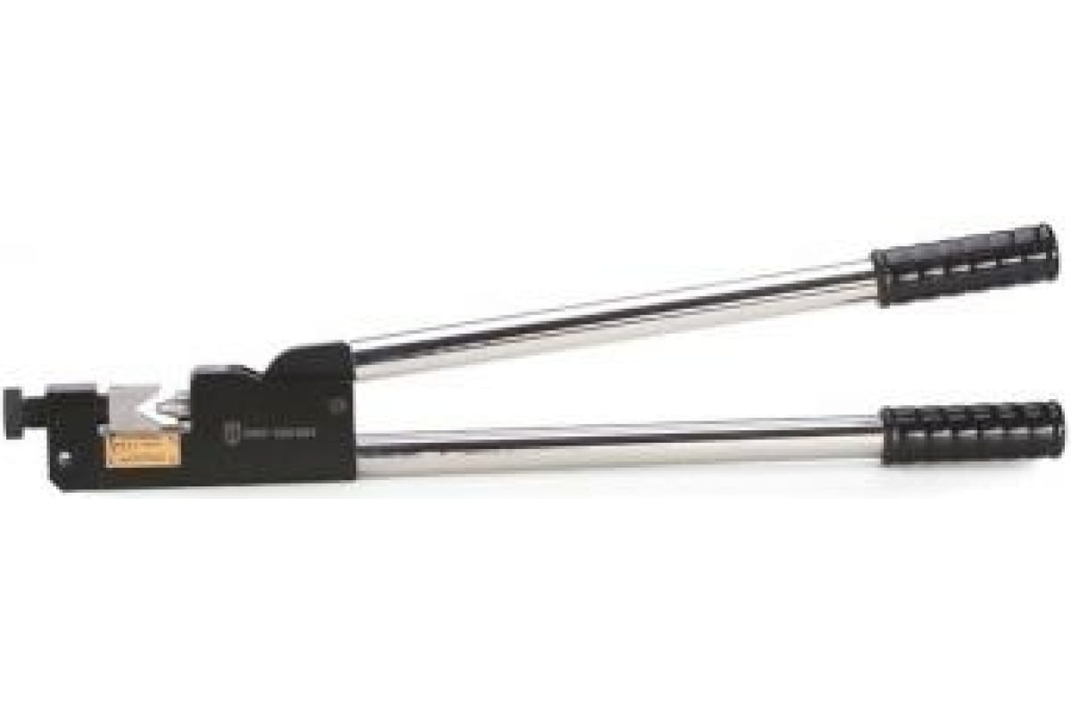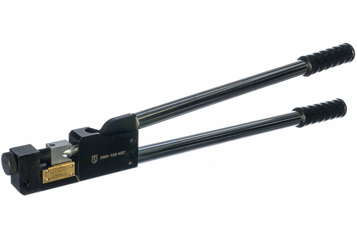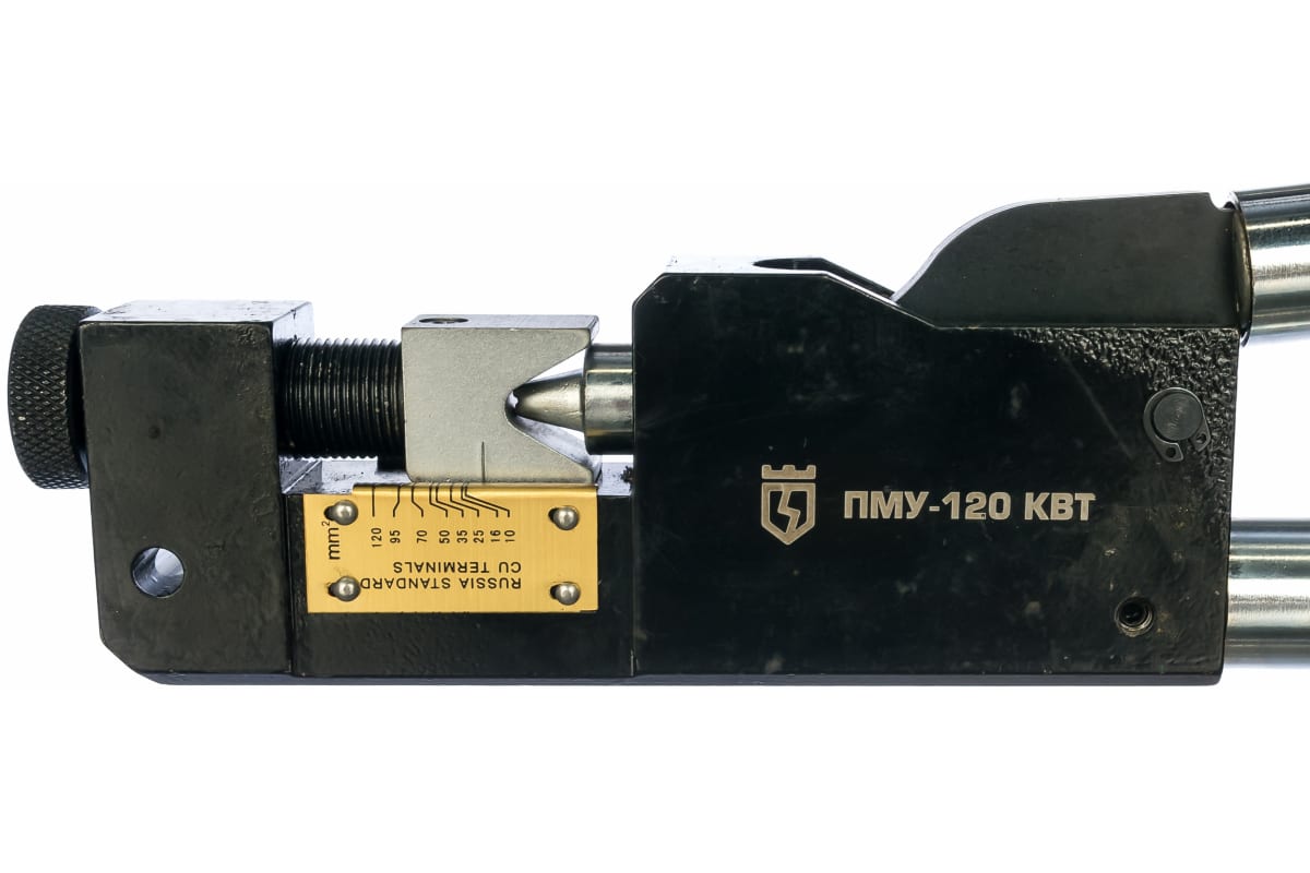 Механический универсальный пресс КВТ ПМУ-120 47541 предназначен для клиновидной опрессовки наконечников из меди и алюминия. Инструмент имеет встроенную V-образную матрицу. Пресс изготовлен из прочной стали, на конце расположены удобные для захвата рукоятки. При помощи установочного винта, который расположен в верхней части инструмента, можно быстро установить необходимый типоразмер.