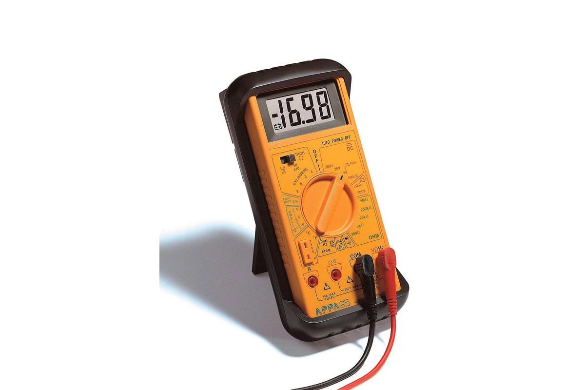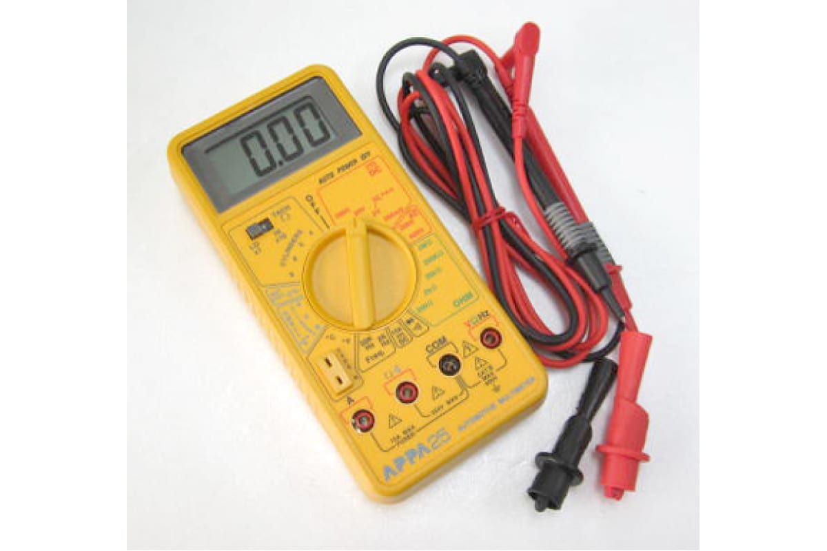 Мультиметр APPA 25 прост и надежен в обращении. Применяется для измерения напряжения, постоянного тока, сопротивления, частоты, скважности, температуры.