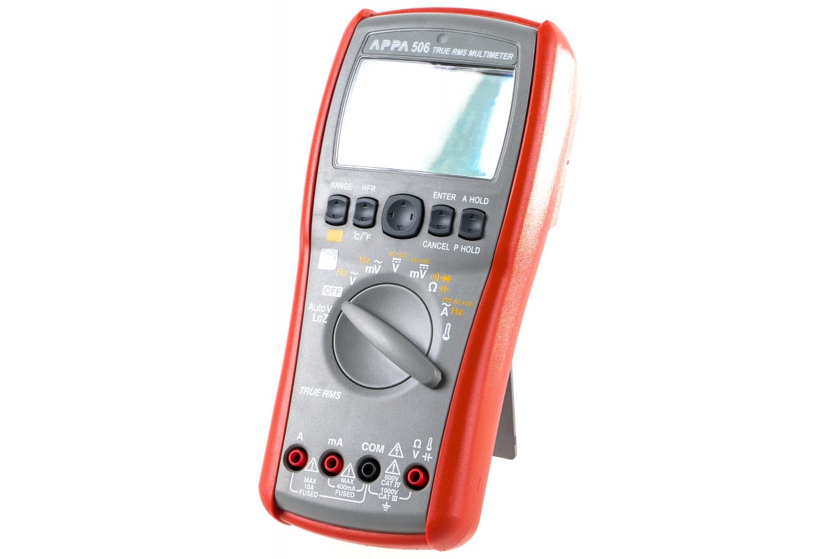 Мультиметр APPA 506 - многофункциональный прибор, применяемый для измерения напряжения, переменного и постоянного тока, частоты, сопротивления, емкости и температуры. Имеет возможность проверки диодов и прозвонки электроцепи.