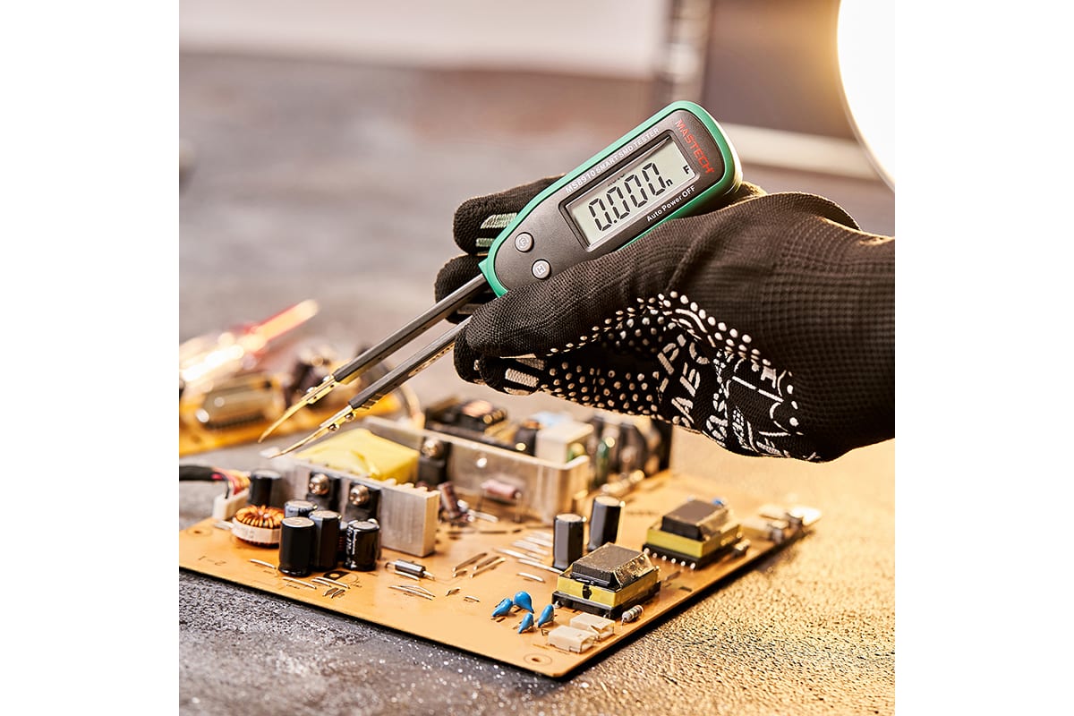 Измерительный прибор MS8910 предназначен для проверки сопротивления и емкости SMD компонентов, а также для проверки целостности цепи и тестировании диодов. Чип компоненты или (SMD) очень маленькие по размеру и проверять их обычным мультиметром со стандартными щупами не очень удобно, так как размер наконечников щупов зачастую сопоставим с размерами тестируемого компонента. Для этих целей лучше всего и подходит MS8910. Он выполнен в компактном корпусе в виде пинцета, что значительно упрощает работу при тестировании SMD компонентов. Прибор прост в применении и не требует дополнительных знаний или навыков для работы с ним. Выбор пределов измерения производится автоматически, нужно лишь выбрать с помощью кнопки FUNC что измерять: емкость или сопротивление.