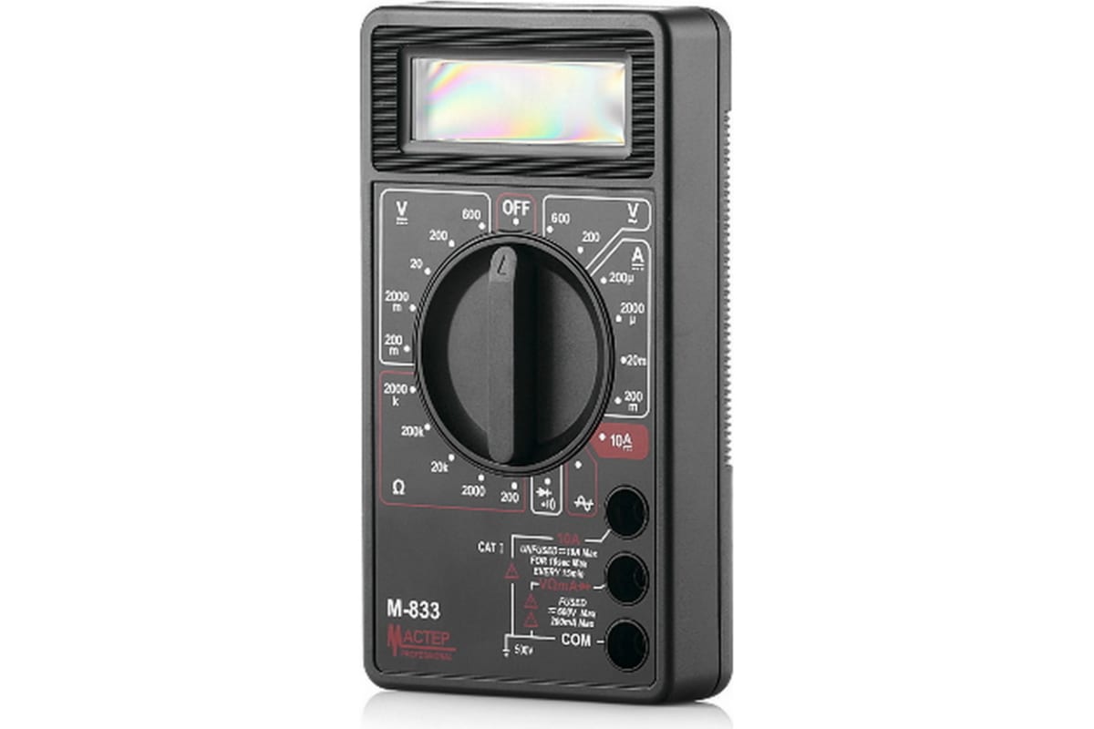 Мультиметр Master Professional M833 90833 - компактный измерительный прибор, позволяющий определить текущие параметры напряжения сети, постоянного тока и сопротивления.