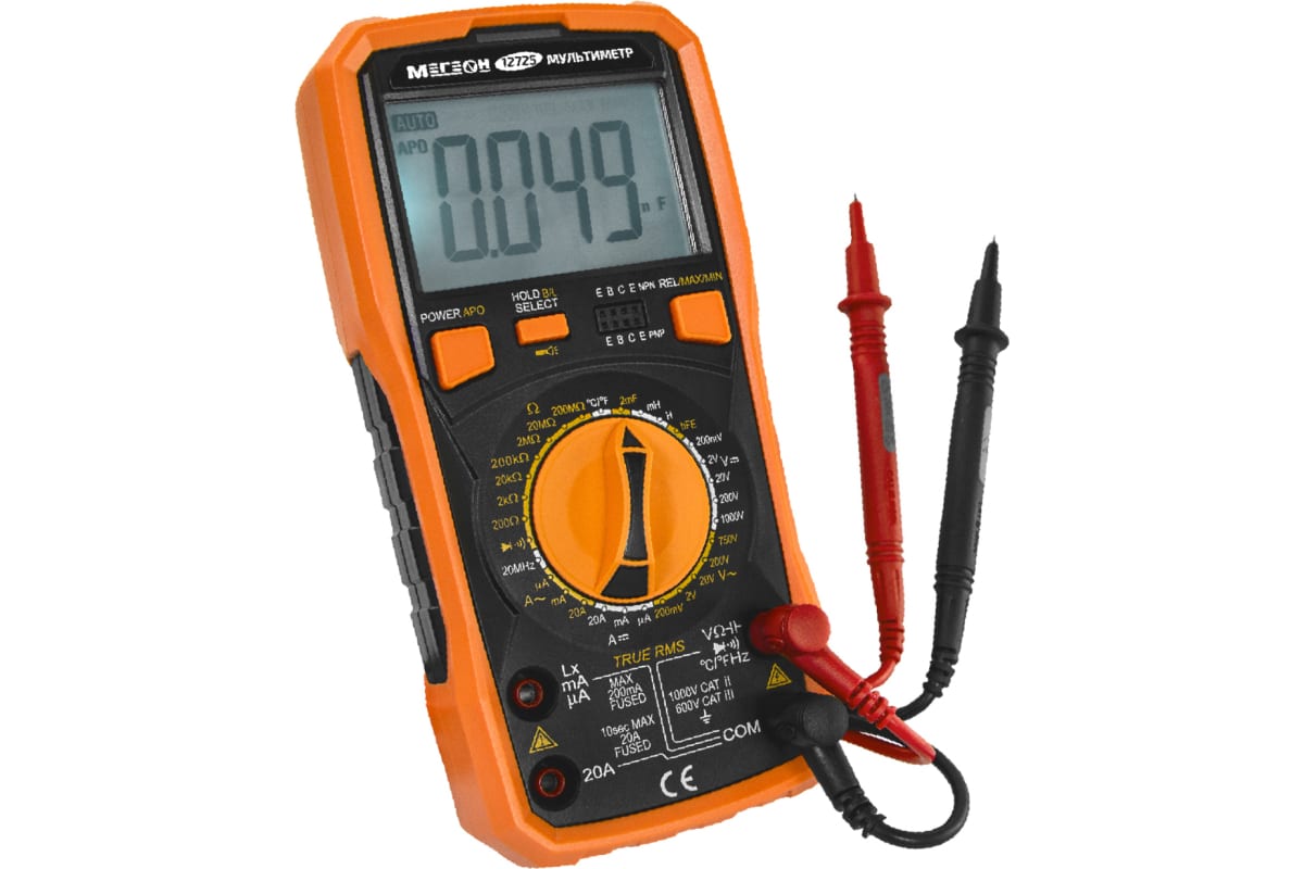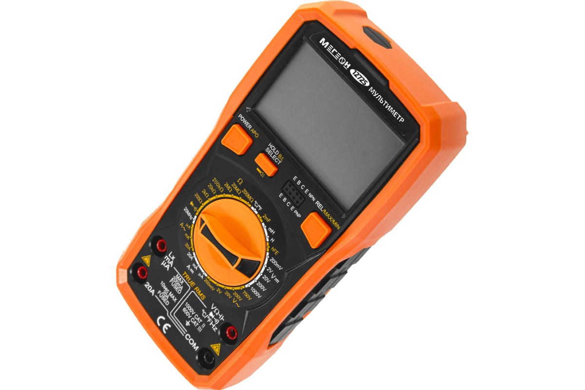 МЕГЕОН 12725 - это надежный и высокоэффективный цифровой мультиметр, предназначенный для измерения переменного (True RMS) и постоянного напряжения, переменного (True RMS) и постоянного тока, сопротивления, емкости конденсаторов, индуктивности, частоты, температуры (шкала Цельсия/Фаренгейта), проверки диодов, проверки транзисторов и прозвонки соединений. Для улучшения считывания показаний в приборе применен жидкокристаллический дисплей 3,5 разряда с крупным шрифтом цифр. Прибор имеет защиту от перегрузки на всех режимах, функцию автоматического выключения питания и эргономичный корпус с защитным холдером, который делает использование прибора более удобным, а благодаря наличию яркой подсветки дисплея и фонарика, достигается максимальное удобство при эксплуатации. В основу прибора положена БИС АЦП с двойным интегрированием. Этот превосходный измерительный прибор идеально подходит для лаборатории, производства и домашнего хозяйства.