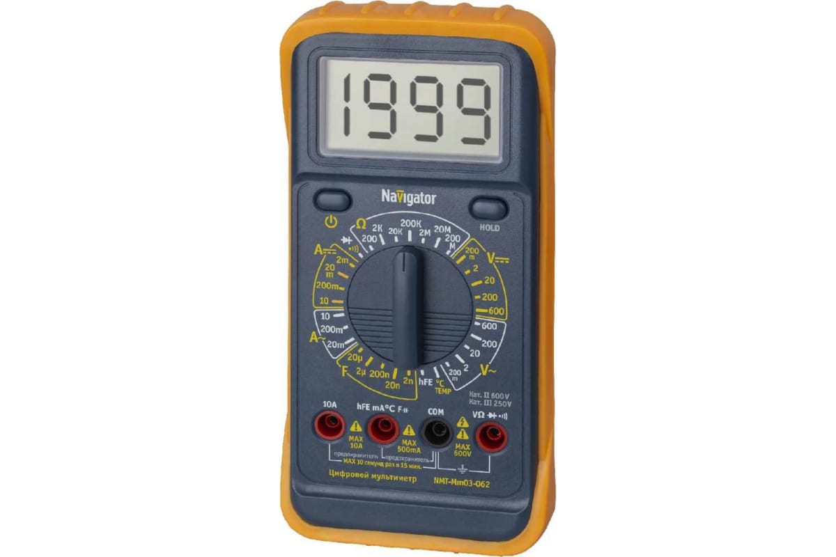 Мультиметр Navigator NMT-Mm03-062 MY62 93148 используются для проведения измерений электротехнических параметров сети и приборов при электромонтажных работах в быту и на производстве.