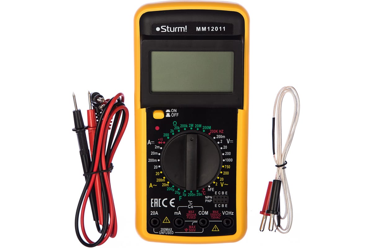 - Высокая точность измерений мультиметра Sturm MM12011;