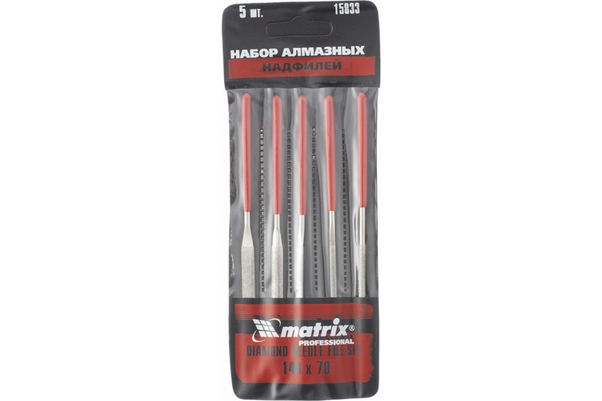 Набор алмазных надфилей 140х70х3, 5 шт MATRIX MASTER 15833 состоит из прочных и качественных компонентов, предназначенных для выполнения слесарных работ небольшого объема. За счет алмазного напыления надфилями можно легко обрабатывать очень прочные материалы - металлы, керамическую плитку, стекло и пр.