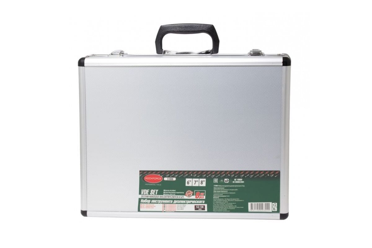Набор диэлектрического инструмента ROCKFORCE 8 предметов RF-51008 предназначен для монтажных, демонтажных и ремонтных работ под напряжением. Каждый инструмент имеет рабочую часть из прочной стали.