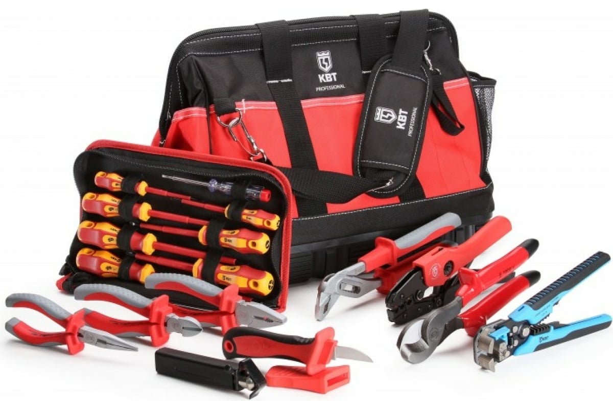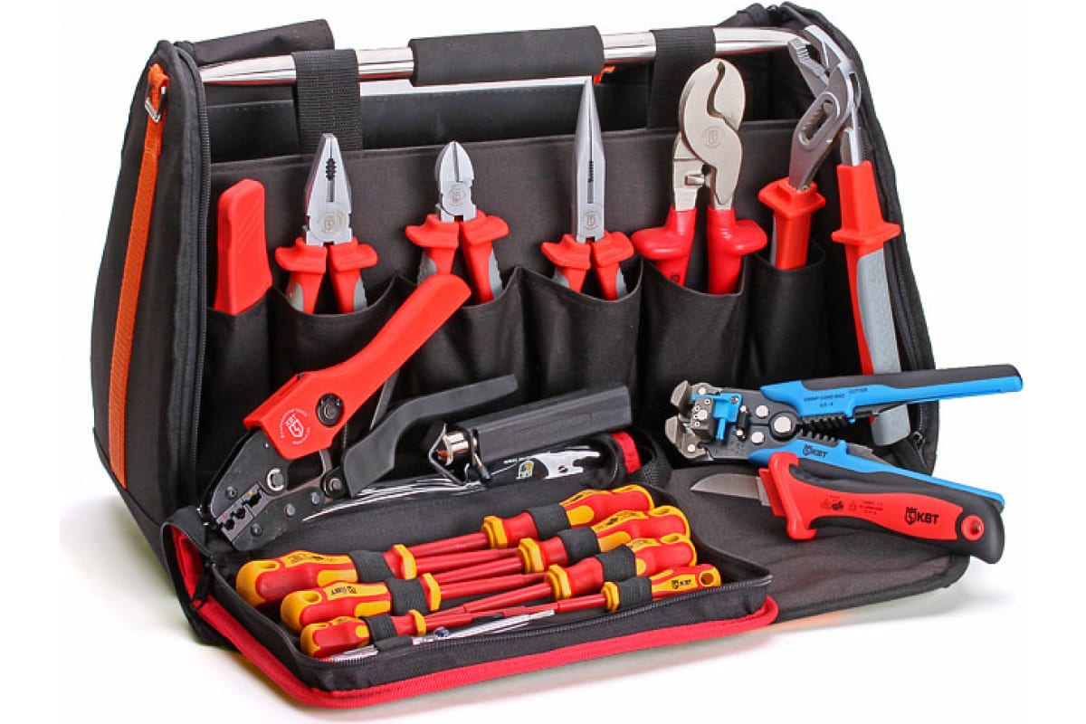 Набор электромонтажника КВТ НИЭ №1 63033 содержит широкий ассортимент инструментов, необходимых для выполнения электромонтажных работ. Включает пресс-клещи, изолированные ножницы, стрипперы, нож монтерский, изолированные пассатижи, изолированные бокорезы, изолированные длинногубцы, изолированные клещи, изолированные отвертки. Все легко помещается в сумку, которая входит в комплект поставки. Инструменты имеют изолированные рукоятки, что позволяет работать под напряжением до 1000 В.