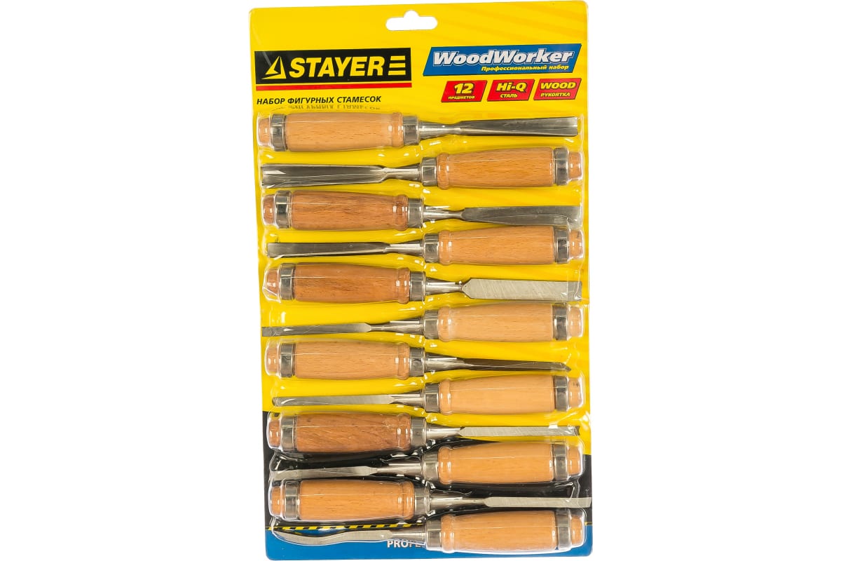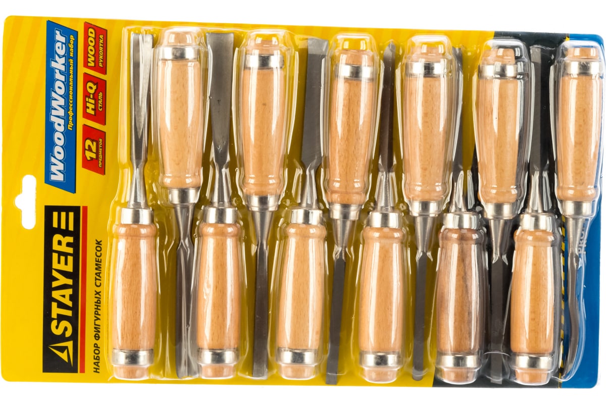 Набор фигурных стамесок STAYER PROFI с деревянной ручкой, 12шт 1835-H12_z01 представляет собой столярные инструменты для вырезания различных форм и узоров на заготовках. Отличаются долгим сроком службы.