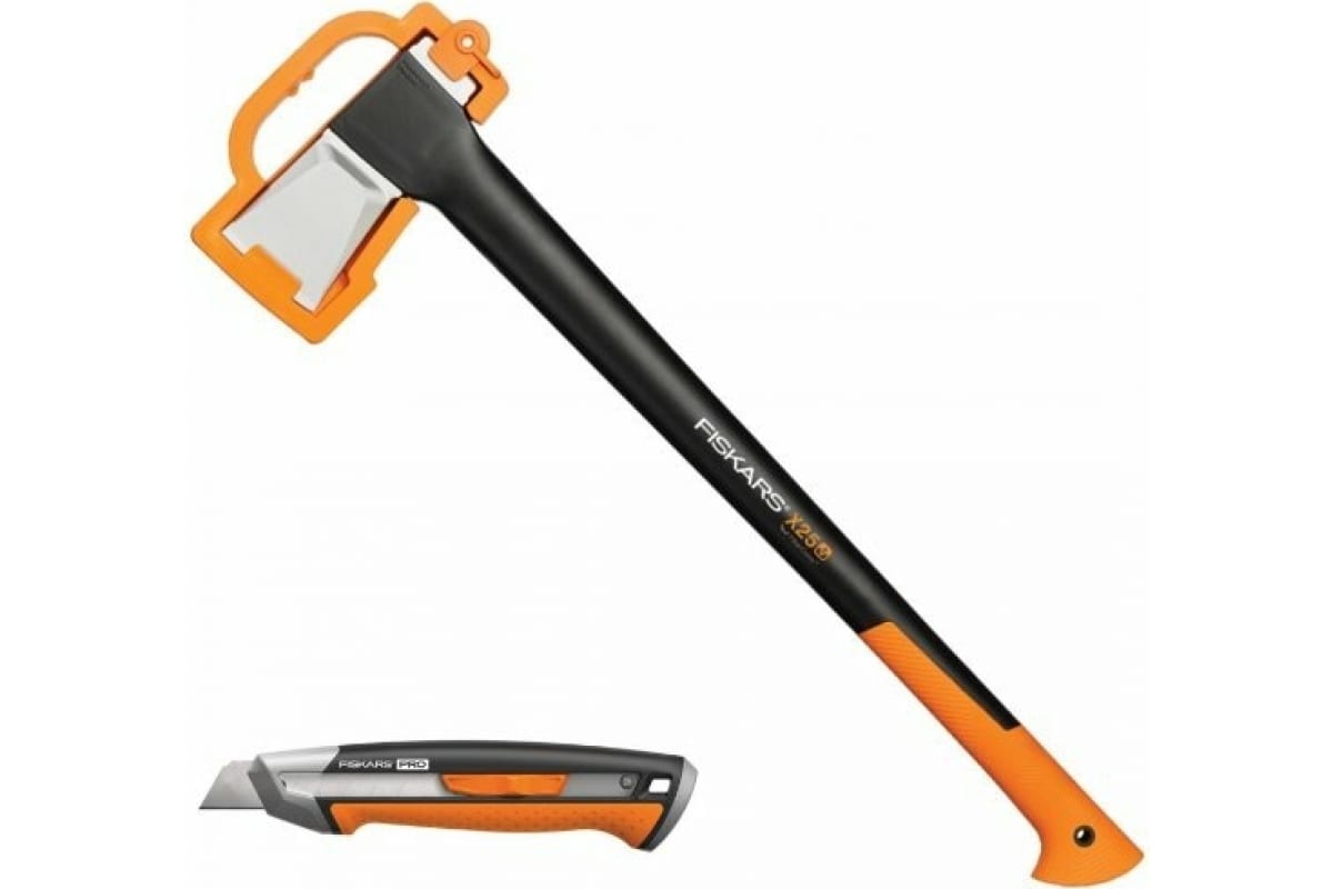 Набор Fiskars: топор Х25, строительный нож CarbonMax 1057915 предназначен для бытового и профессионального использования.