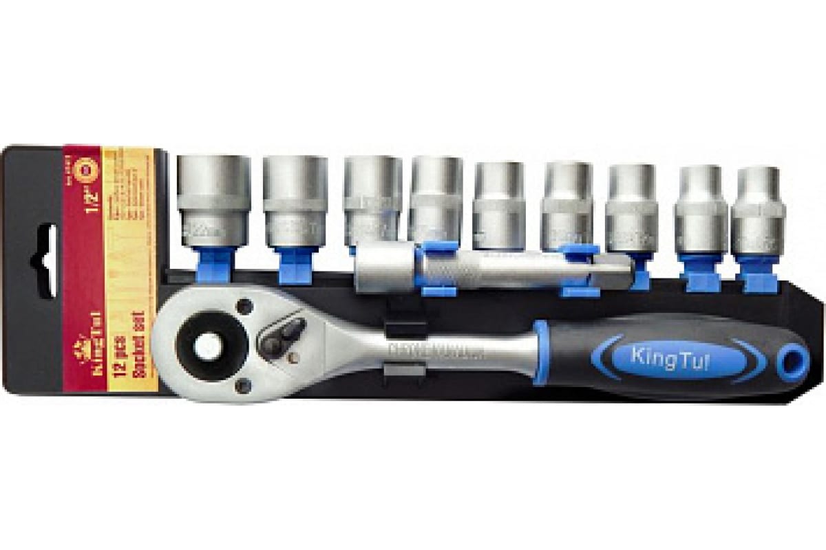 Набор головок с трещоткой и удлинителем в пластиковом держателе KINGTUL 12пр. 1/2" 2747 KT412 можно использовать при работе с крепежом. Комплект включает в себя инструмент из прочного металла для вращения под большим усилием.