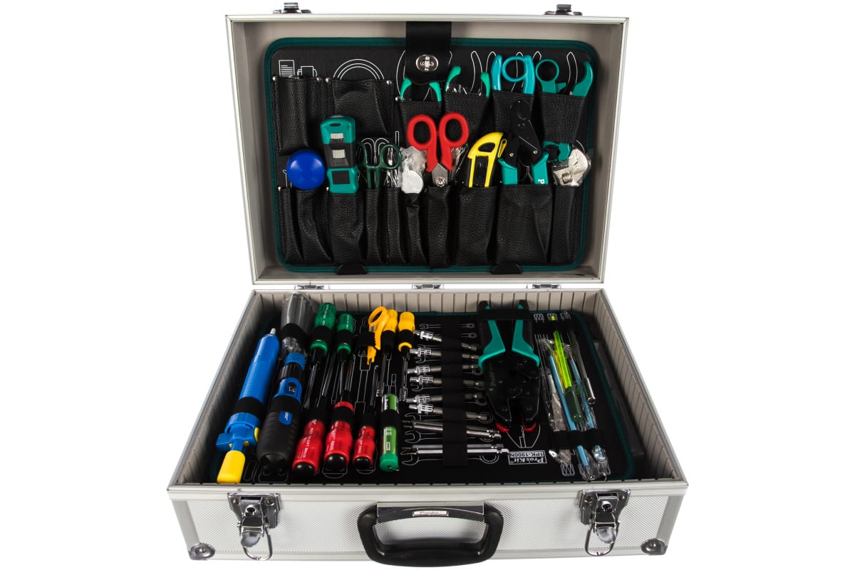 Набор инструментов 1PK-19382B 00270519 включает множество предметов для электромонтажных работ.