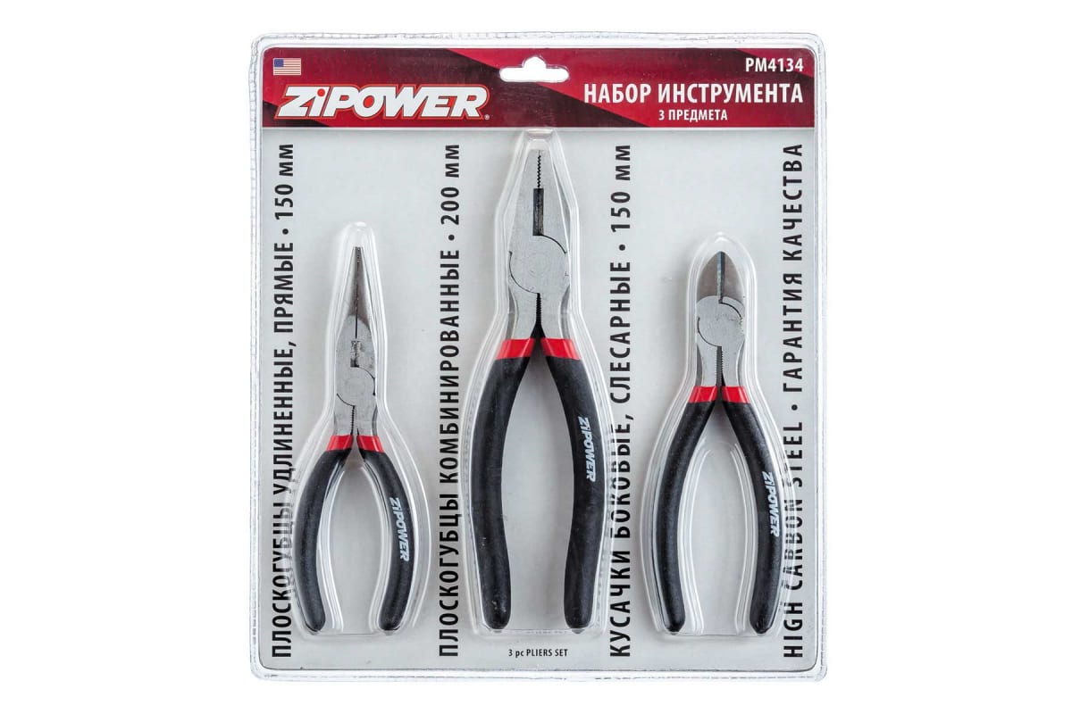 Набор инструмента Zipower 3 предмета PM4134 для профессиональных и бытовых целей. Кусачки и плоскогубцы имеют удобные рукоятки.