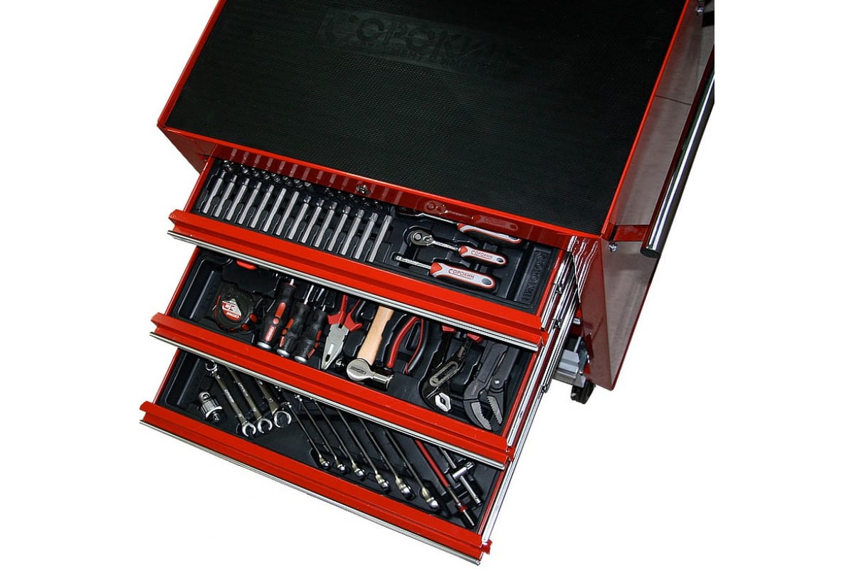 Данный набор является модульным. Его можно использовать как составляющий для наполнения инструментального шкафа. Также составив необходимую конфигурацию из любой нижней и верхней части, получится полноценный мобильный кейс с инструментом.
