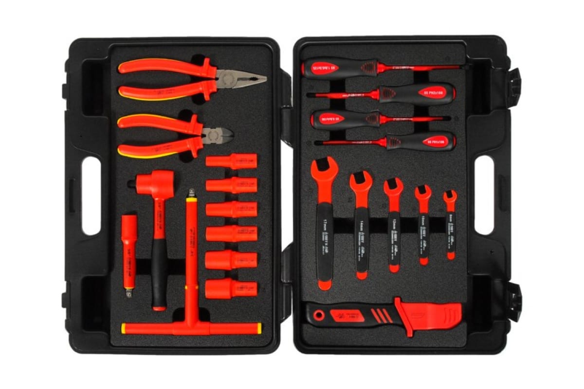 Набор инструментов для электроустановок 3/8" 10-24 мм с изоляцией 1000V (22 предмета, кейс) JTC I008 изготавливается в соответствии с современными стандартами En60900: 2004. Качественная изоляция позволяет применять инструменты для обслуживания электроустановок, которые находятся под напряжением 1000 В (тип тока - переменный).