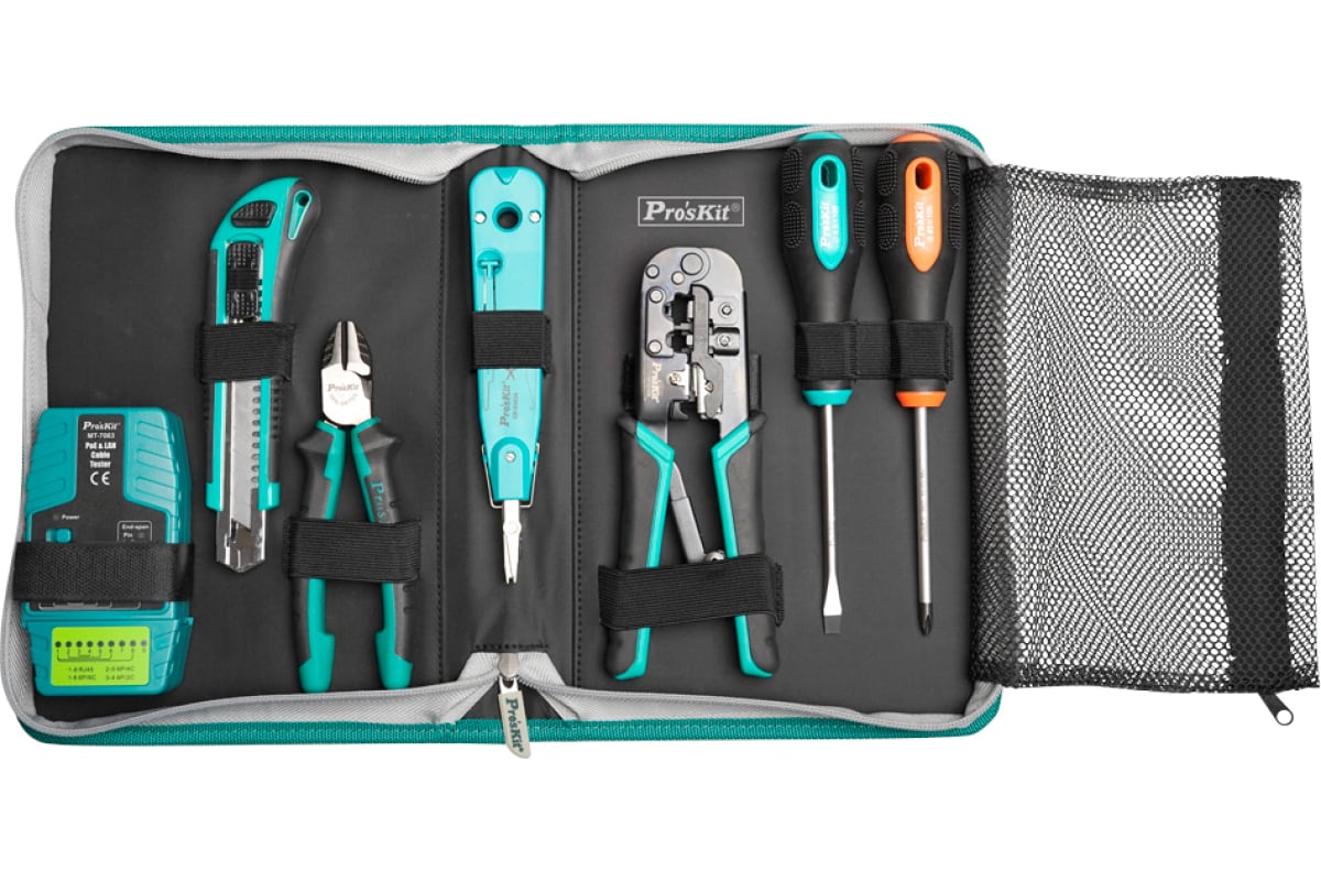 Набор инструментов для обслуживания LAN - минимальный набор инструментов для работы с Lan-сетями. Весь инструмент хранится в прочной и удобной сумке.