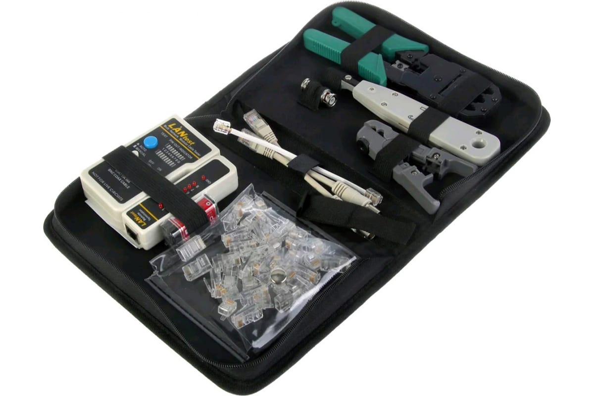 Набор инструментов для СКС 5bites TK031 в портмоне содержит основные инструменты для монтажа СКС и способен значительно облегчить работу, начиная от обжима разъемов RJ45/11/12 до тестирования кабельных сегментов сети и забивки/заделки проводников во врезные контакты KRONE.