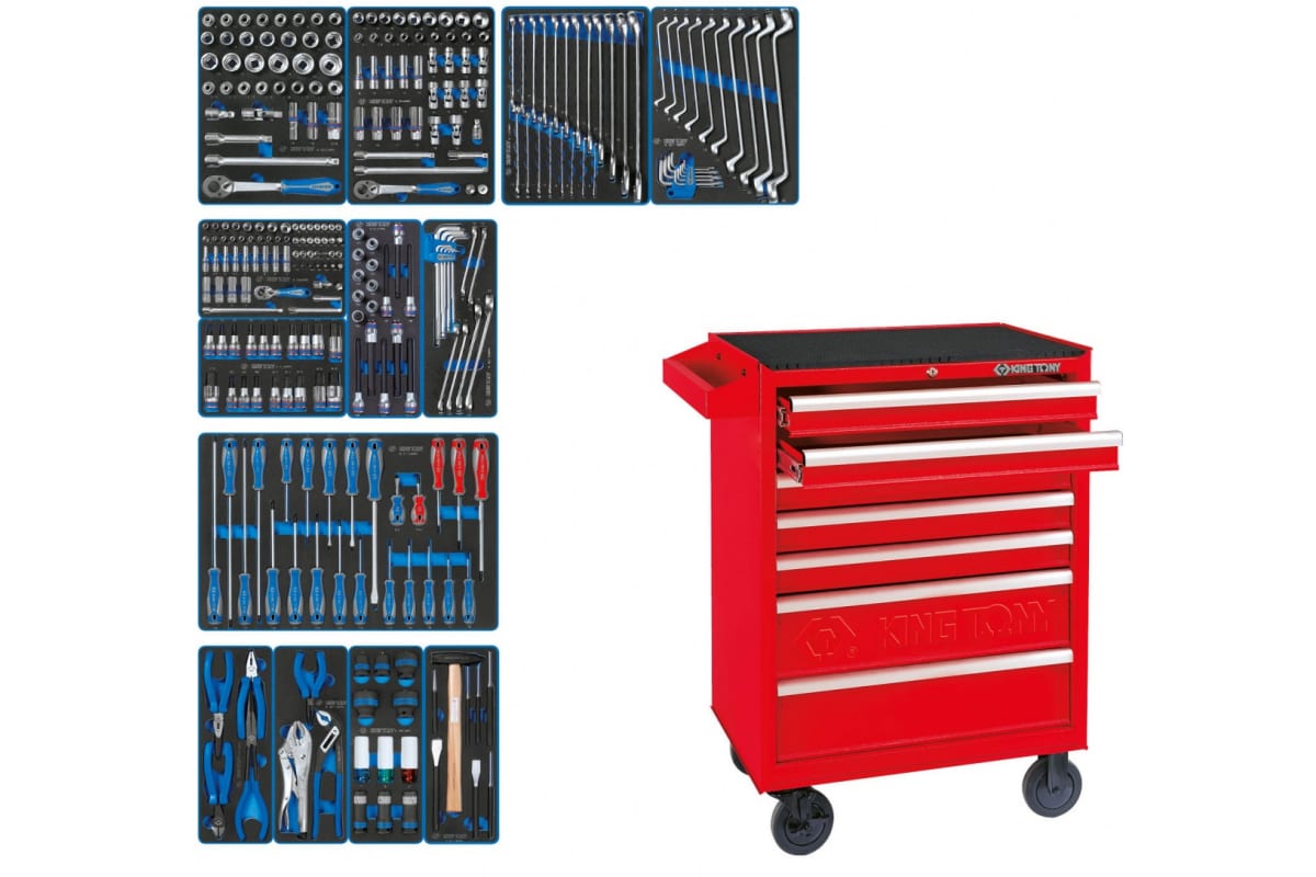 Набор инструментов KING TONY "CLAIM" в красной тележке, 286 предметов 934-286MRV имеет расширенную комплектацию.