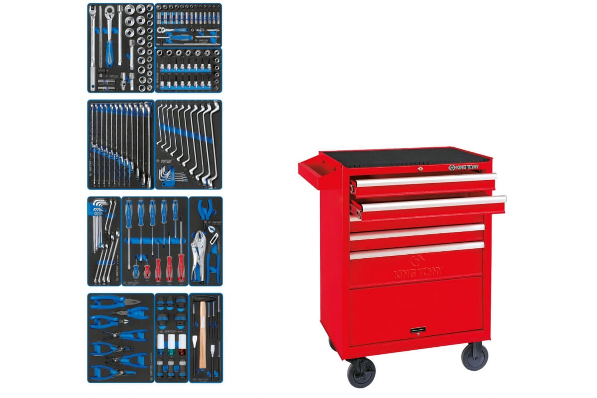 Набор инструментов KING TONY "FOCUS" в красной тележке, 188 предметов 934-188AMR представлен в расширенной комплектации.