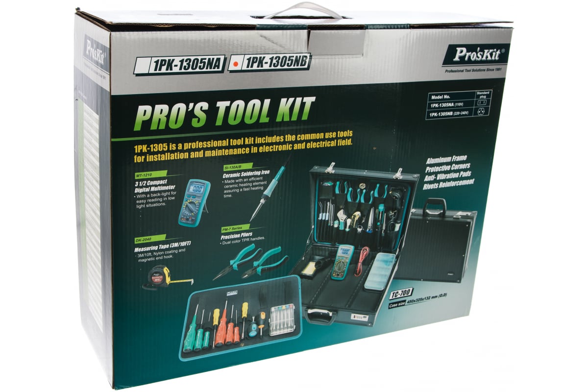 Набор инструментов ProsKit 1PK-1305NB 00270466 подходит для проведения слесарных, паяльных и распаячных, а также электротехнических работ.