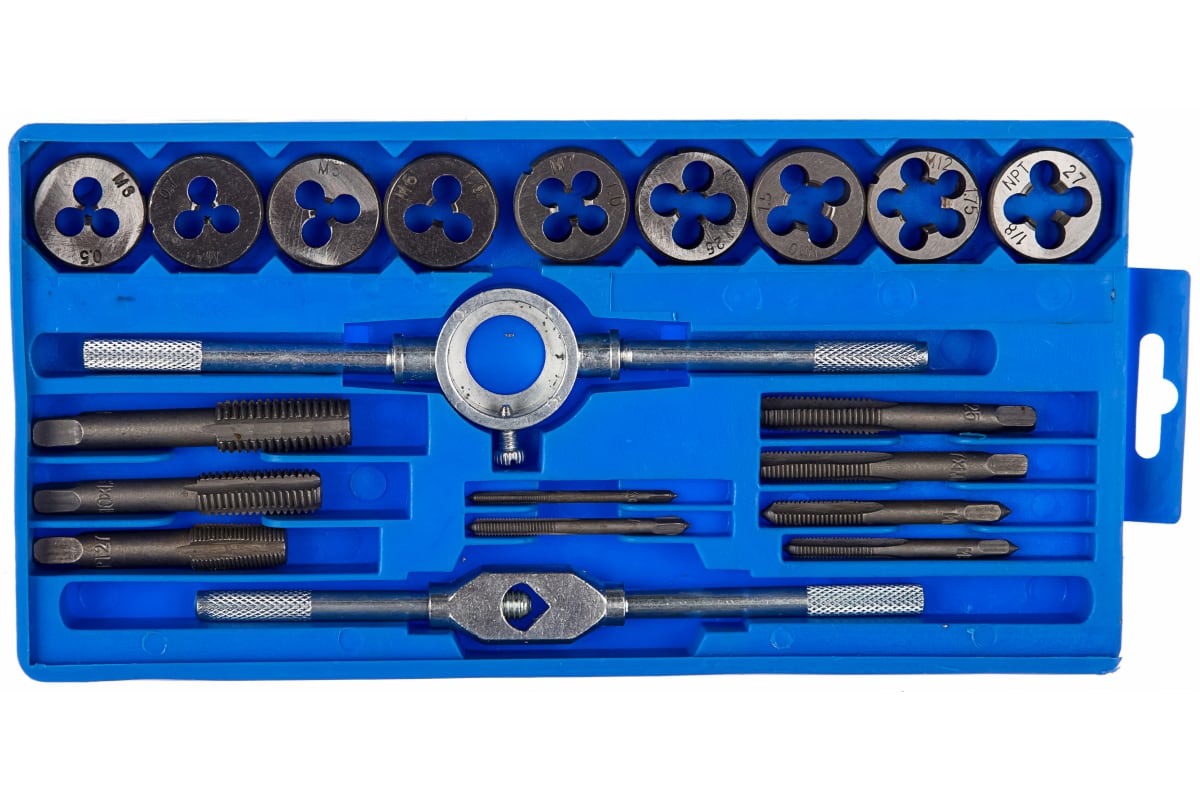 Преимущества набора метчиков и плашек FIT 70780- Набор для нарезания, FIT 70780, 20 шт удобен при переноске и хранении, потому что упакован в специальную пластиковую коробку.