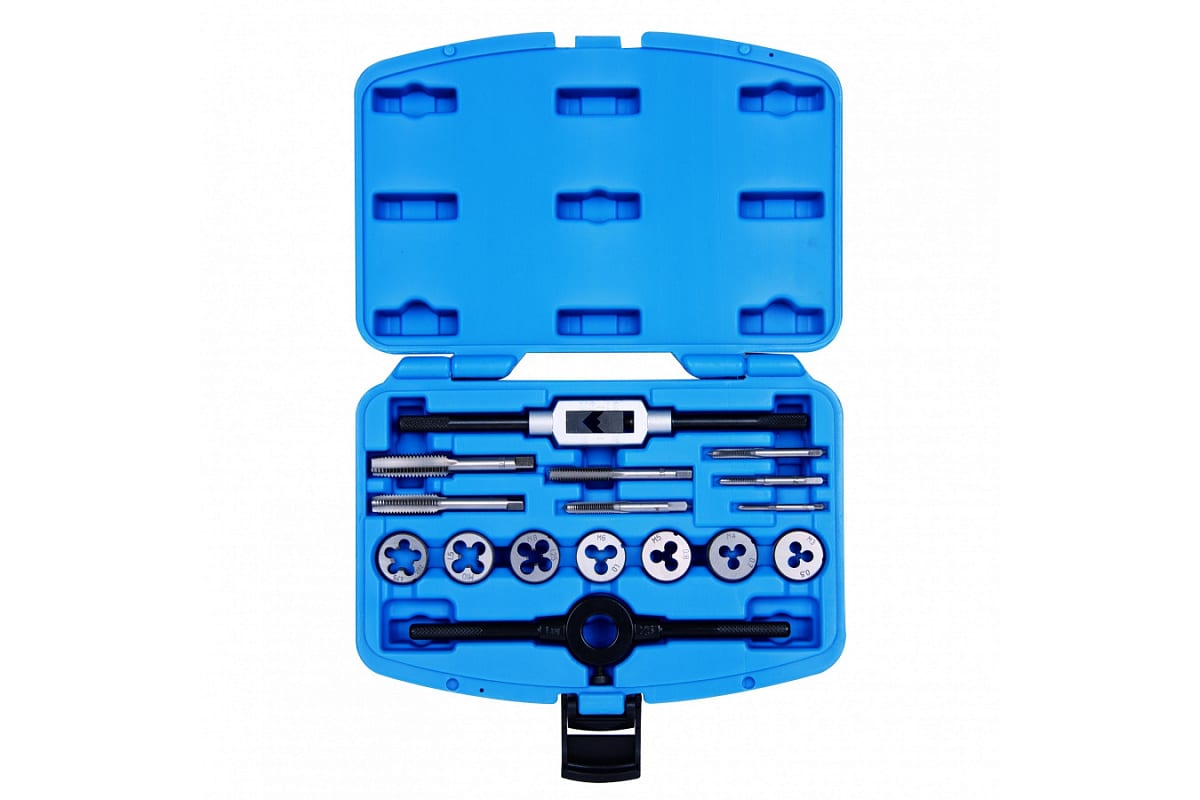 Набор метчиков и плашек KING TONY SK5 M3-M12, кейс, 16 предметов 12916MQ1 предназначен для нарезки внутренней и наружной резьбы. Инструменты выполнены из быстрорежущей стали.