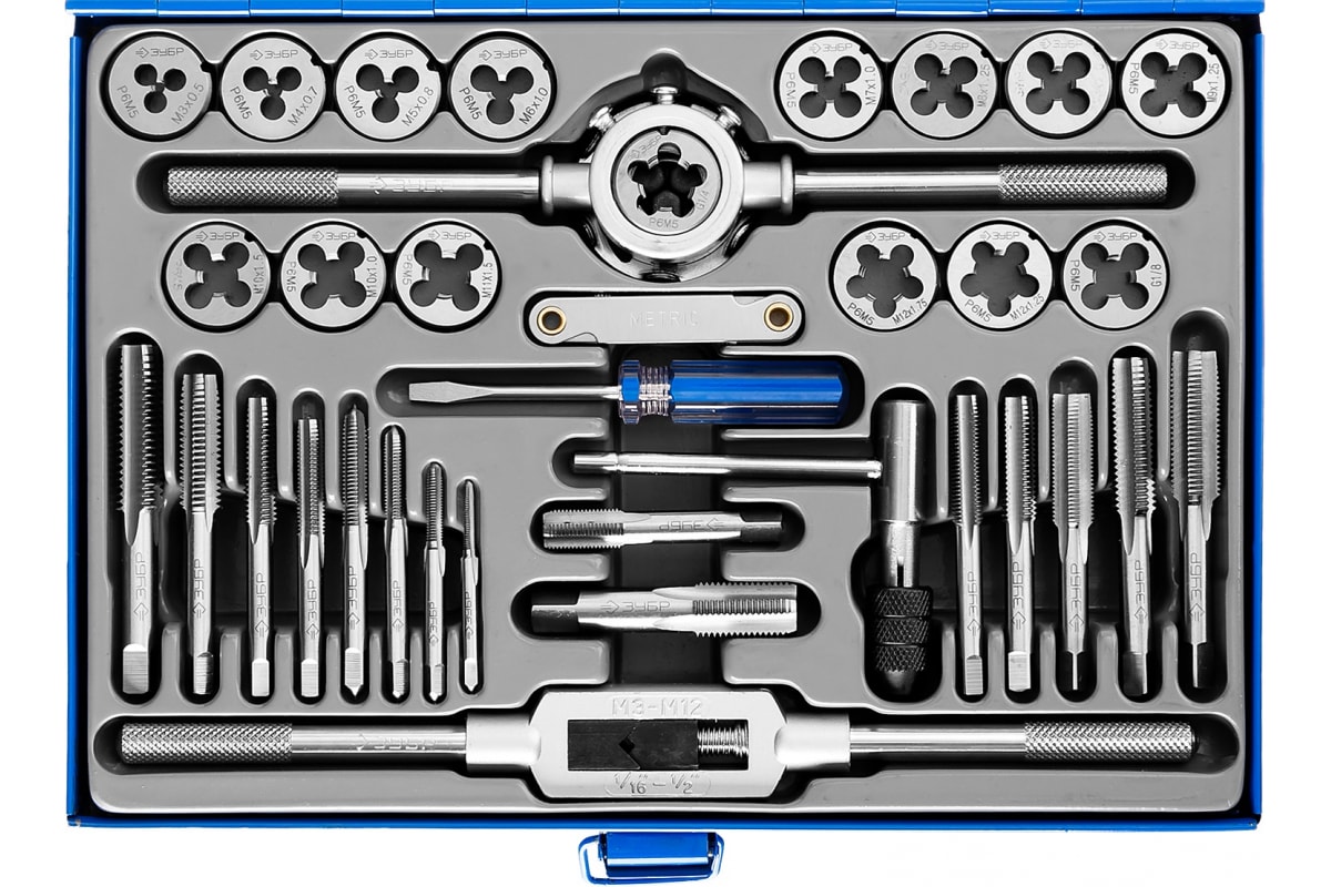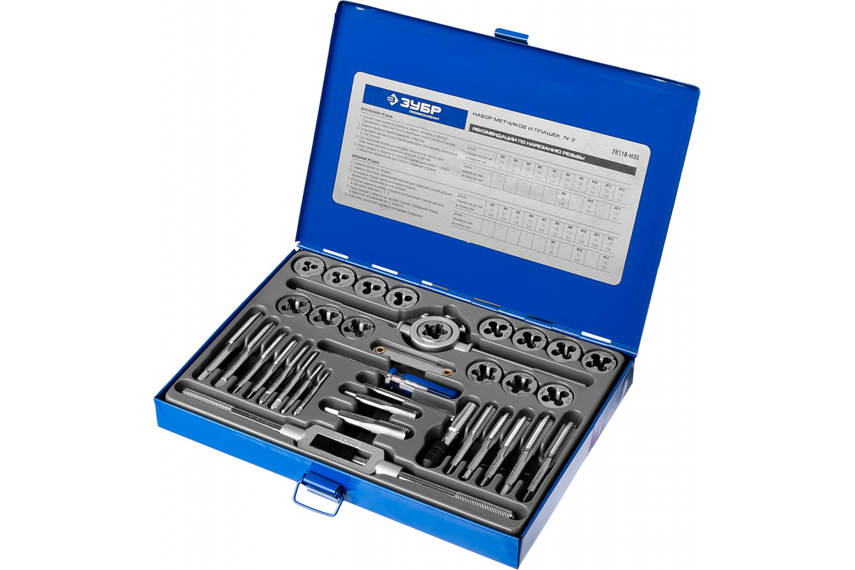 Набор метчиков и плашек Зубр ПРОФЕССИОНАЛ сталь Р6М5, 35 предметов 28110-H35 представляет собой высококачественный надежный инструмент для проведения резьбонарезных работ. Предназначен для профессионального использования.
