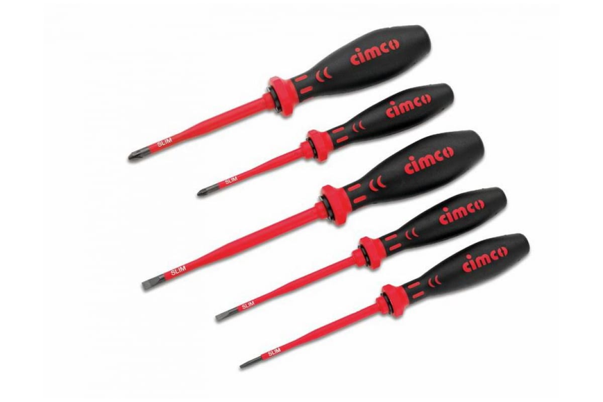 Набор отверток для электриков CIMCO SLIM 5шт. 11 7850 предназначены для электромонтажных работ с резьбовым крепежом. Включает в себя самые популярные размеры профилей. Отвертки серии DIAMOND Drei-Ve SLIM имеют зауженный хвостовик и благодаря этому позволяют обеспечить доступ к глубоко посаженным винтам. Изоляция предусмотрена для безопасной работы под напряжением до 1000В.
