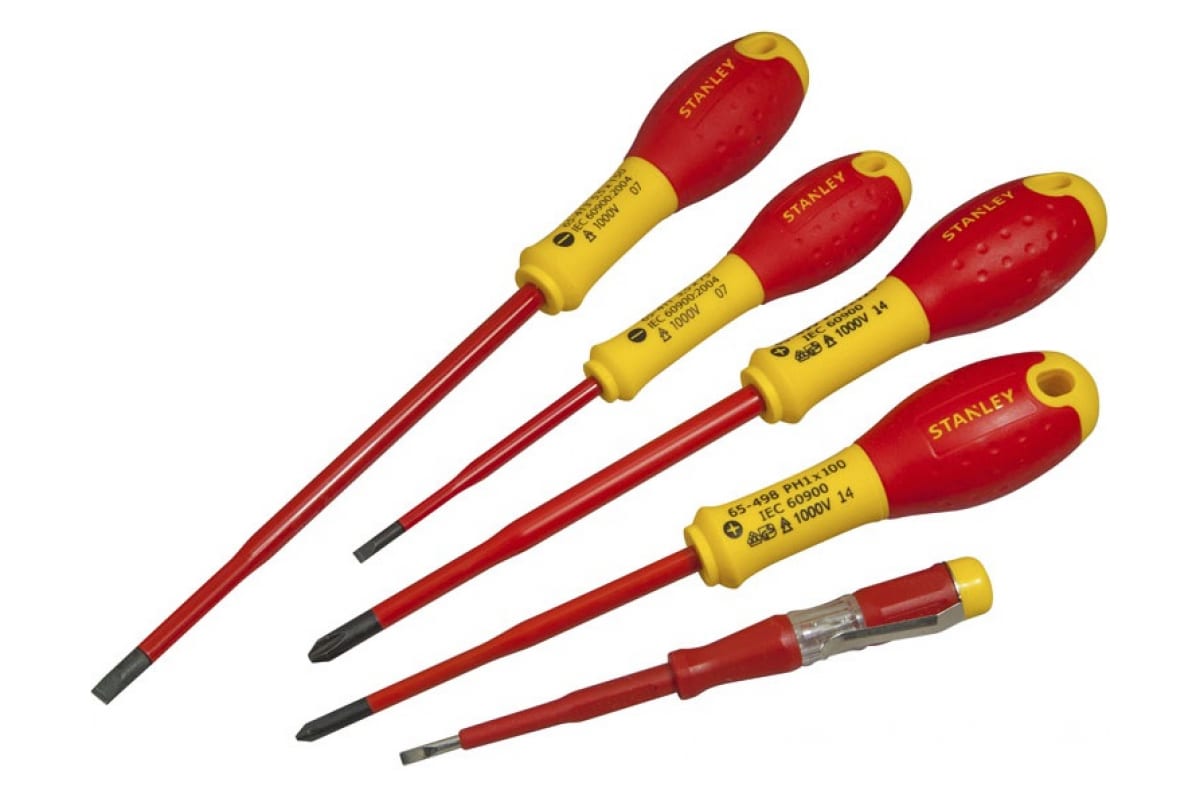 - Каждый инструмент из набора отверток электрика с зауженным стержнем 3.5х75, 5.5х150; Pz1х100, Pz2х125; эл.пробник 250В Eu, 5шт Stanley Fatmax XTHT0-62693 индивидуально протестирован на пробу под напряжением 10.000 В;