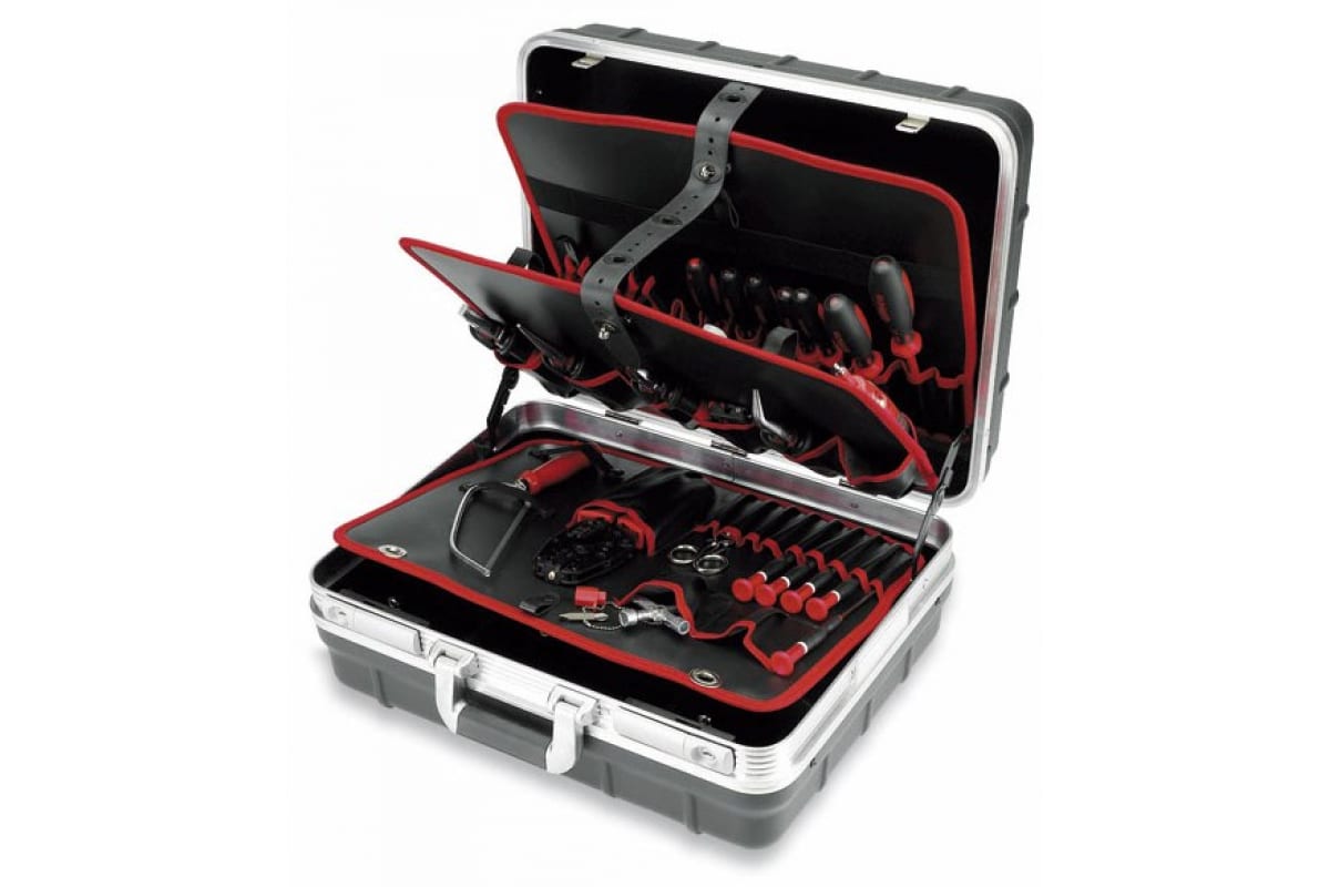 Набор профессионального инструмента CIMCO CHAMPION DNT 17 0310 разработан для электротехнических работ любого вида. Отвертки набор изолированы, имеются телефонные клещи и ножницы. Набор поставляется в удобном и просторном кейсе с несколькими подложками. Металлические петли делают кейс более надежным. Набор предоставляет все необходимое для работ с электрикой: плоскогубцы, бокорезы, нож для снятия изоляции. Удобная рукоятка упрощает транспортировку набора. Вес всего инструмента составляет 8 килограммов.