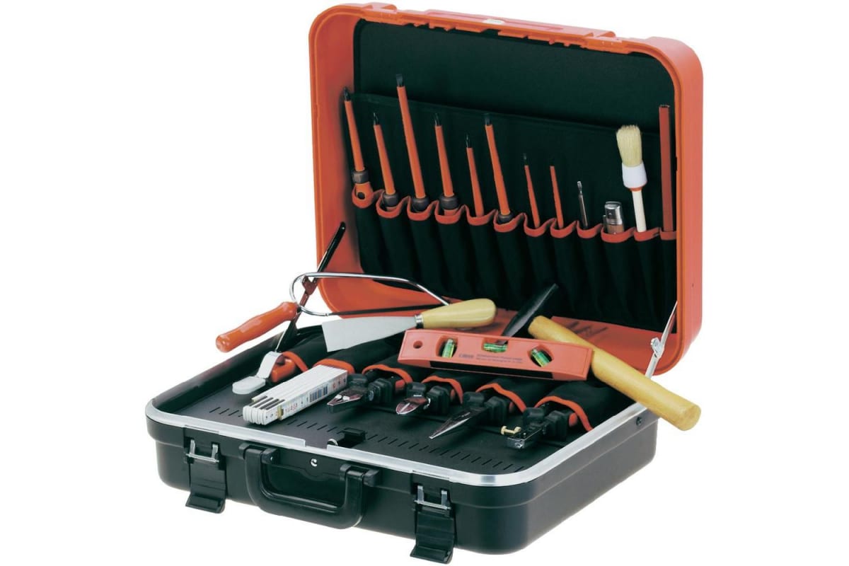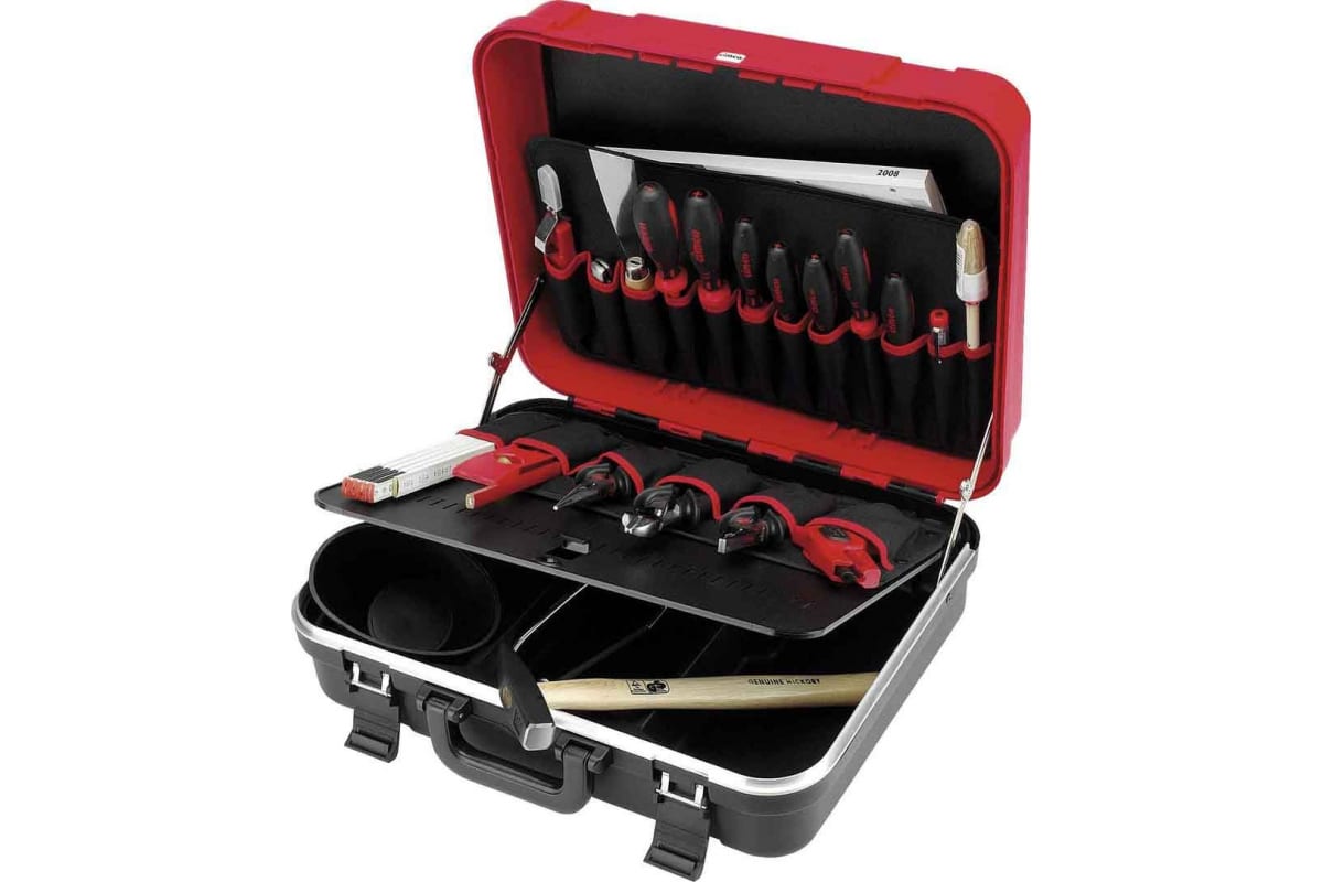 Набор из 24 предметов CIMCO 17 2004 используется для проведения ответственных электромонтажных работ. Изолированные профессиональные инструменты отличаются безопасностью в работе и позволяют ремонтировать установки под напряжением до 1000 В.