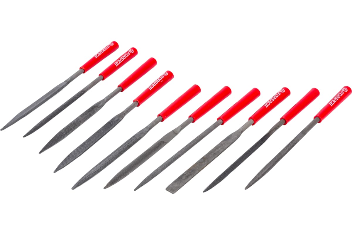 Набор разнопрофильных надфилей Forsage 10 предметов L-180 мм, d5 мм в блистере F-6165 50154 используется в качестве обрабатывающего инструмента при выполнении малых слесарных работ. Набор состоит из 10 различных по форме надфилей, что расширяет сферу применения.