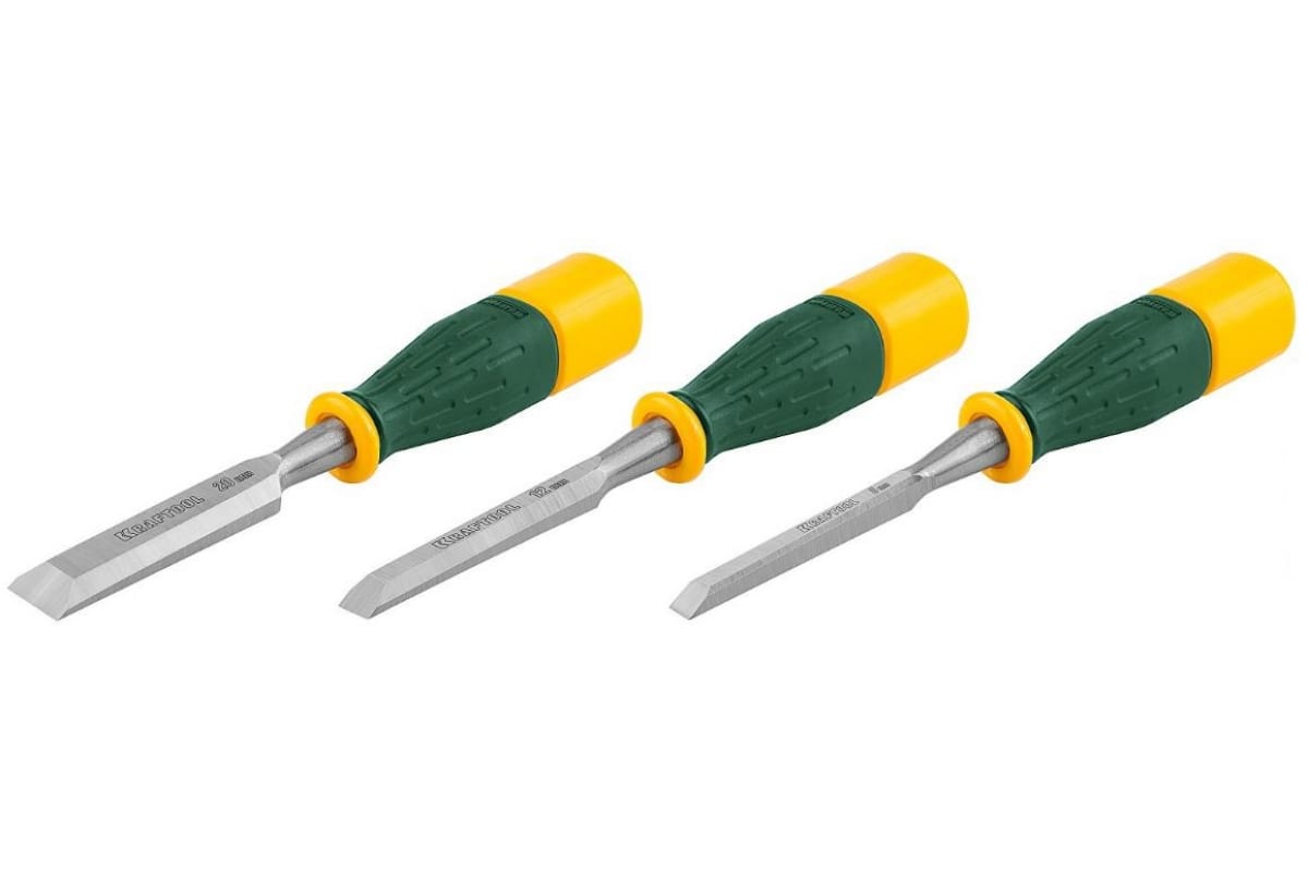 Набор стамесок с двухкомпонентной ручкой, 12, 18, 25мм KRAFTOOL "EXPERT" 1815-H3 представляет собой профессиональный инструмент из высокопрочной стали.