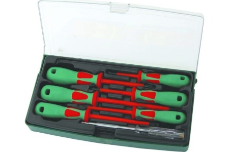 Набор стержневых диэлектрических отверток Jonnesway DV13PP07S 7 предметов 48787 состоит из 7 отверток, имеющих рабочий профиль PH и SL, предназначенных для работы с резьбовыми соединениями, находящимися под электрическим напряжением. Стержни отверток выполнены из стали, легированной хромом и ванадием. Набор помещен в удобный бокс с прозрачной крышкой и защелкой.