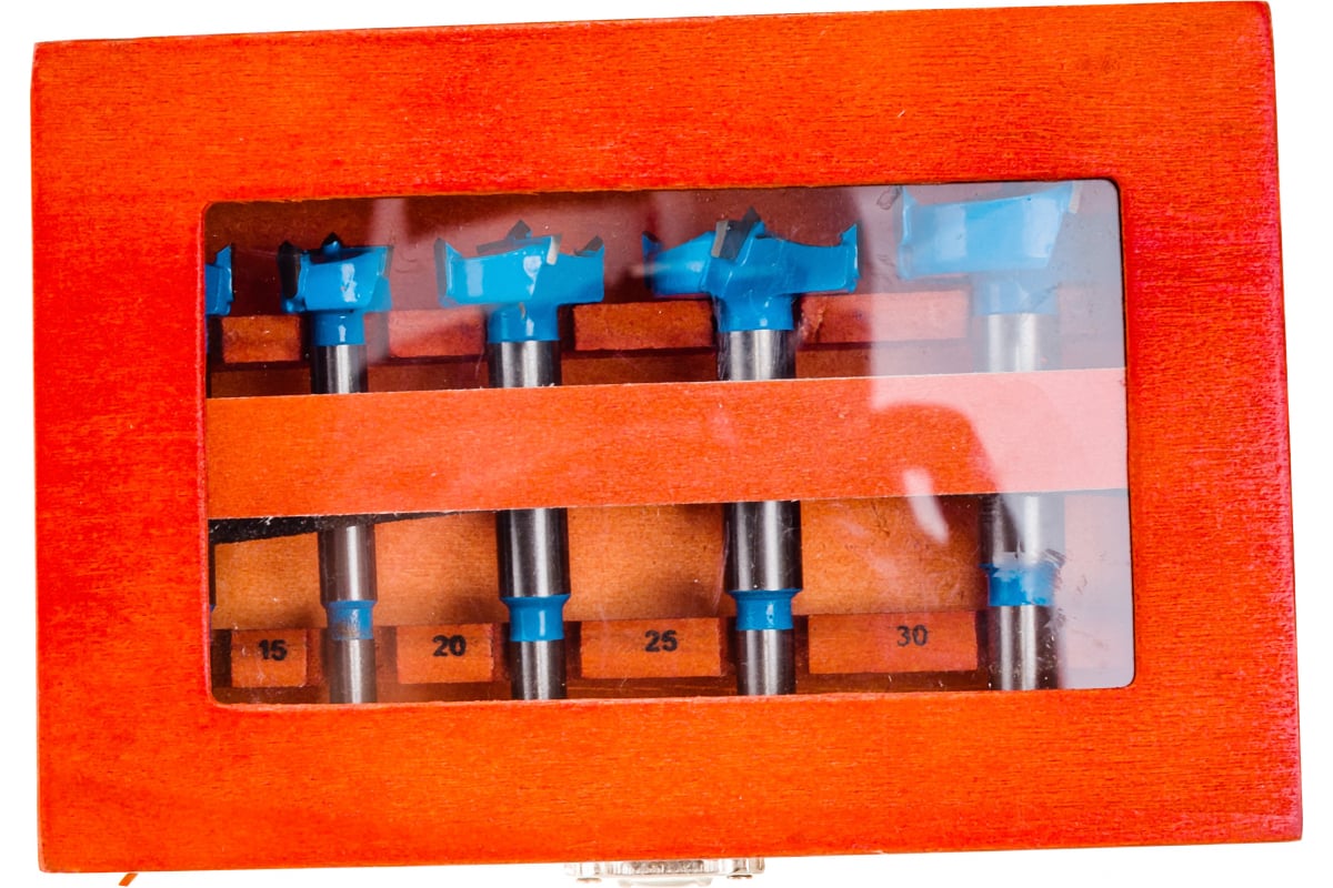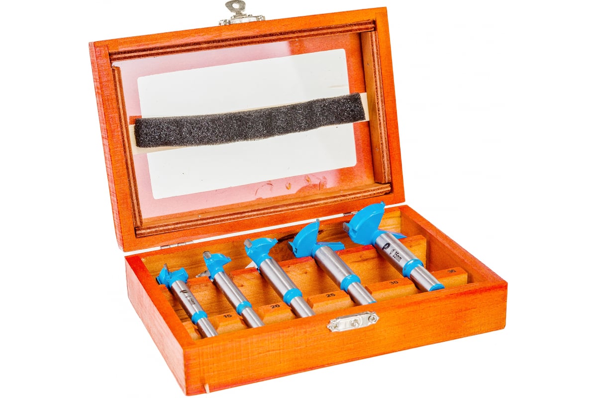 - Сверло Форстнера 5 шт.: 15 мм, 20 мм, 25 мм, 30 мм, 35 мм.