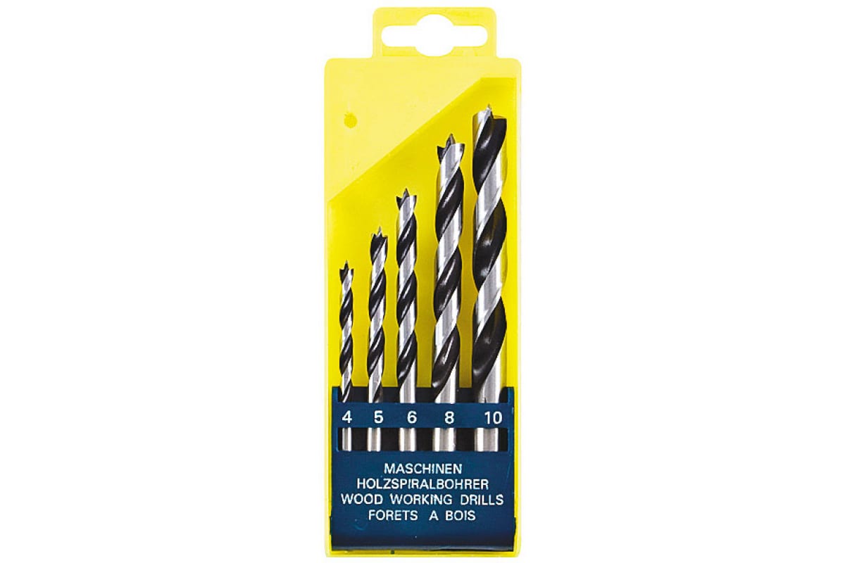 Набор сверл FIT 36099 предназначен для получения отверстий в изделиях из древесины. В комплекте 5 сверл в пластиковом боксе диаметром 4 мм, 5 мм, 6 мм, 8 мм, 10 мм.