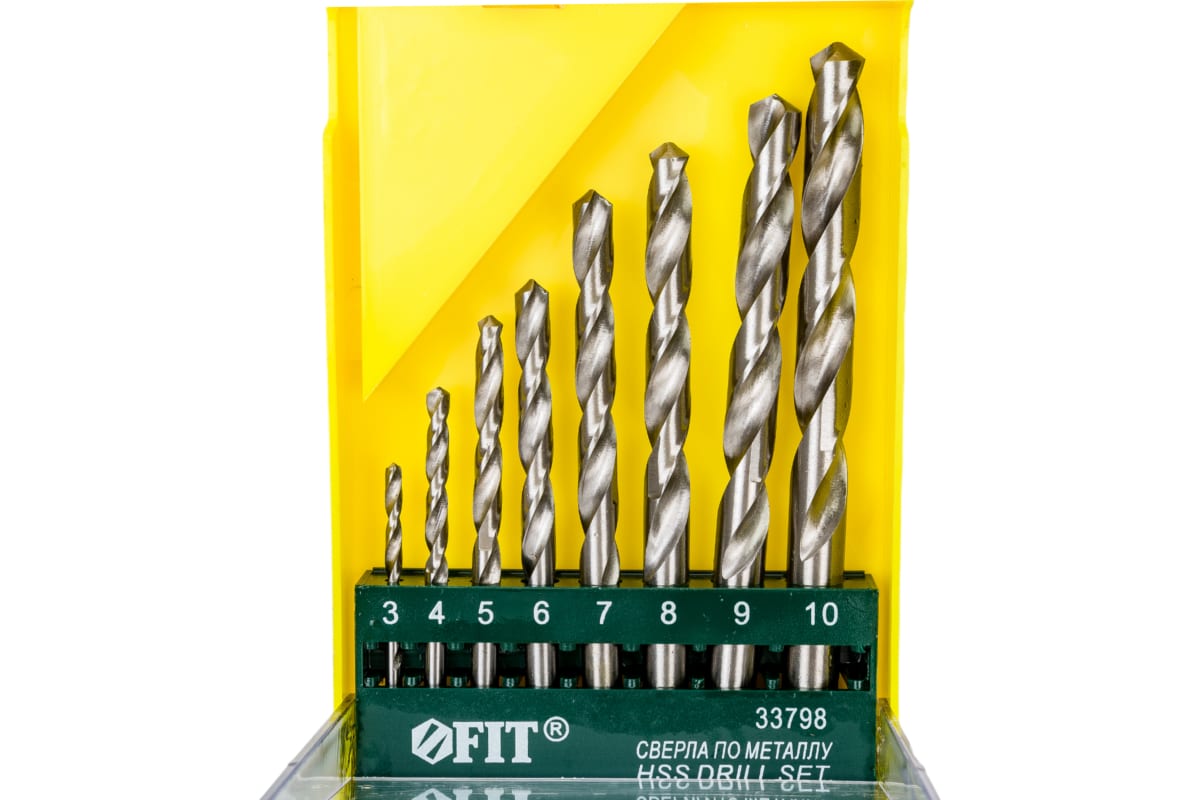 Набор сверл по металлу HSS полированных 3-4-5-6-7-8-9-10 мм 8 шт. FIT IT 33798 предназначен для формирования технологических отверстий в листах тонкопрофильного проката, трубах и других заготовках. Изделия имеют заостренные наконечники, благодаря которым не требуется предварительная обработка места сверления.