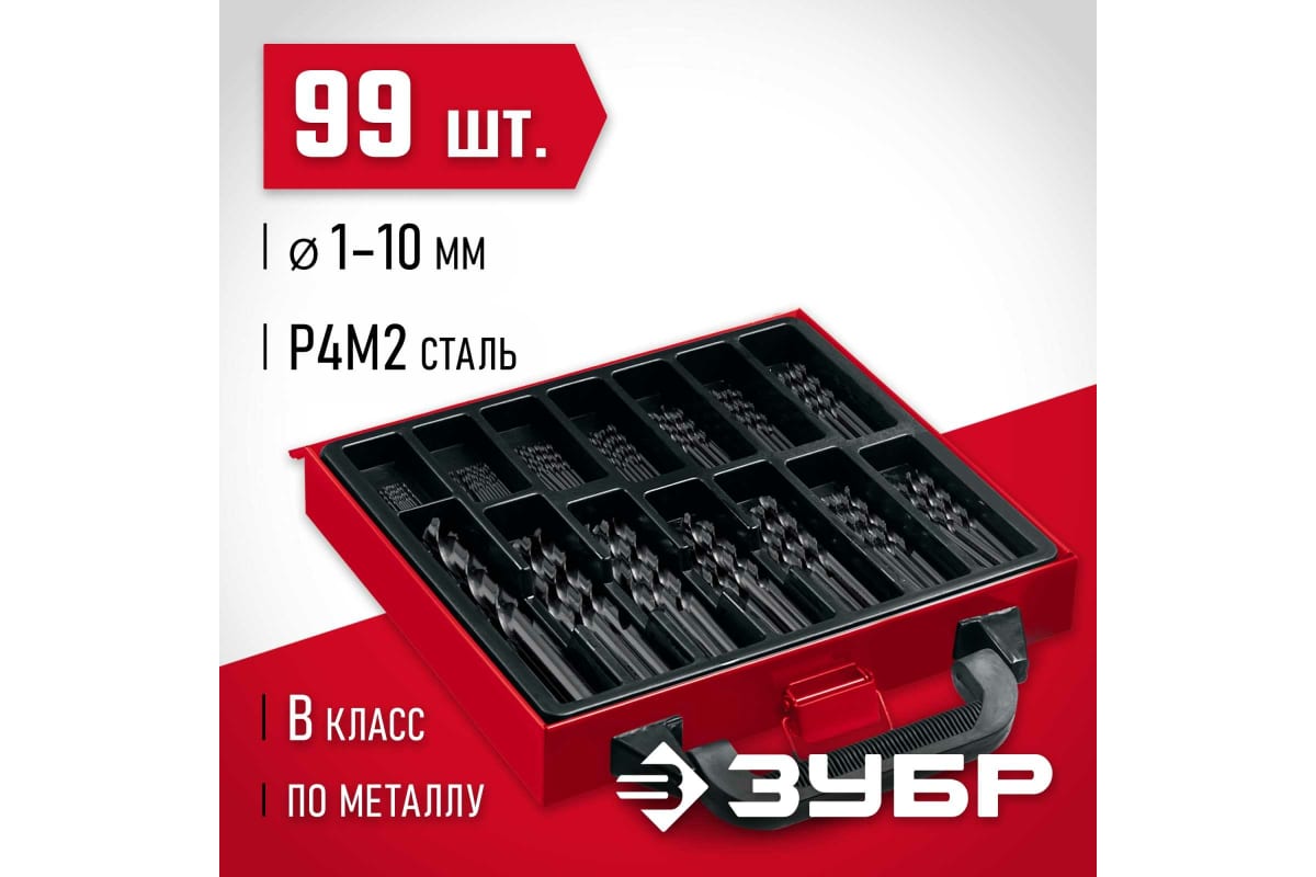 Набор сверл по металлу ЗУБР 29605-H99, предназначен для сверления металлических конструкций и заготовок. Изготовлено методом винтового проката по ГОСТ 10902-77 и соответствует классу точности "В".