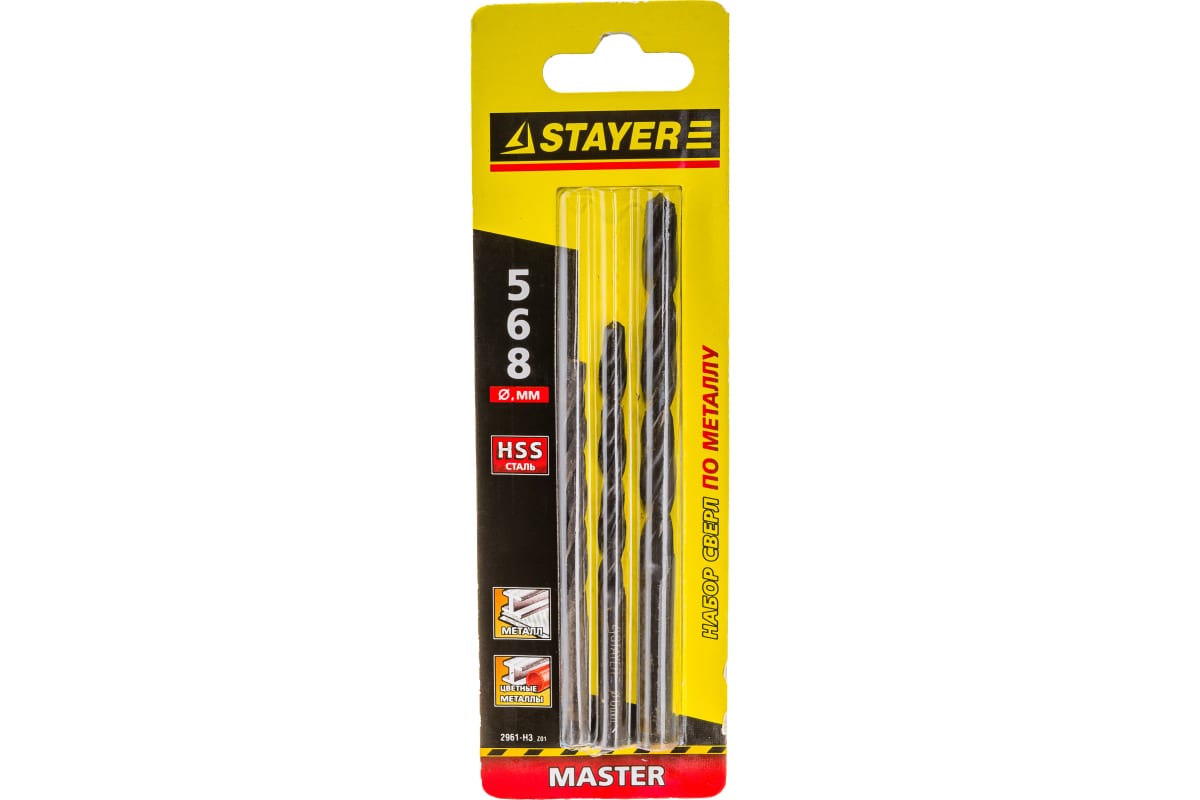 Набор свёрл "MASTER" Stayer 2961-H3_z01 предназначен для сверления отверстий в металлических и пластиковых изделиях. Сверла изготовлены из быстрорежущей стали, имеют угол заточки при вершине 118° и парооксидированное покрытие, защищающее от коррозии.