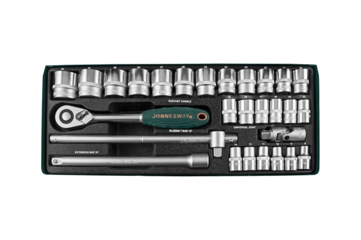 - Специальные углубления в чемодане обеспечивают комфортное хранение и транспортировку набора торцевых головок 1/2"DR 8-34 мм Jonnesway S04H4728S;