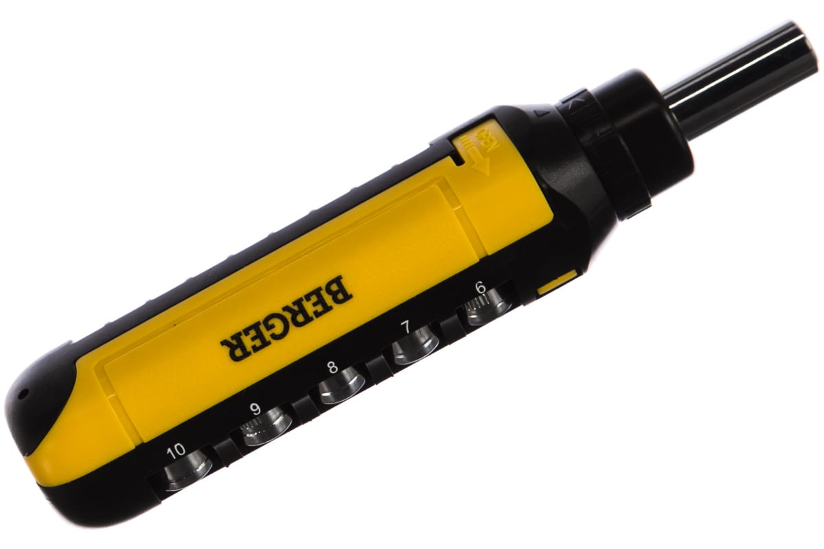 Набор: трещоточная отвертка с битами и головками, 15шт Berger BG BG1073 - многофункциональный комплект ремонтно-монтажных приспособлений для возможности выполнения работ с крепежными элементами различных профилей и размеров. Встроенный храповый механизм обеспечивает легкость и высокую скорость проведения рабочих операций, так как не требуется постоянное переставление инструмента на крепеже.