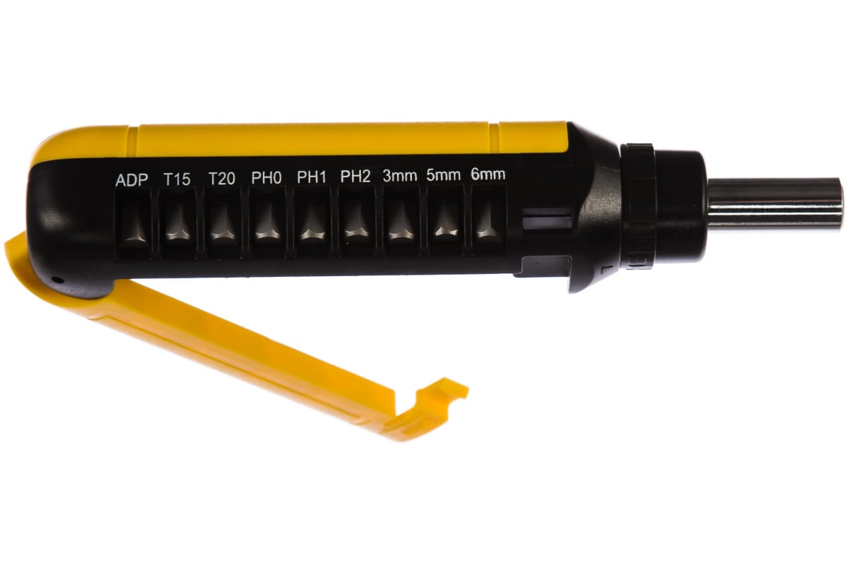 - 8шт.- биты: SL3, SL5, SL6; PH0, PH1, PH2; T15, T20;
