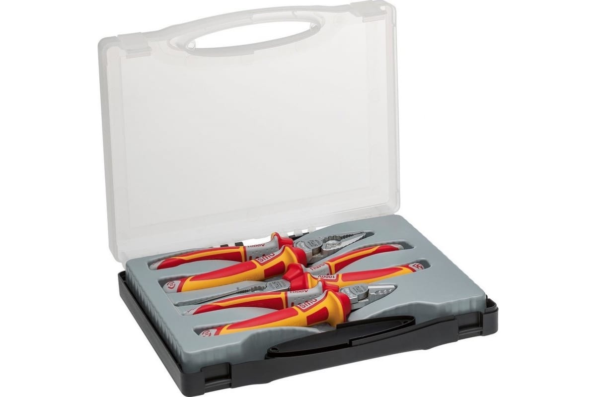 Набор VDE 1000В NWS 841-3 включает в себя особопрочные и надежные ручные инструменты, с повышенным эксплуатационным ресурсом. В наборе пасатижи, бокорезы и длинногубцы оснащенные диэлектрическими рукоятками. Применяется при монтажных работах. Многокомпонентные рукоятки позволяют надежно зафиксировать инструменты в руке, обеспечивая удобство работы.
