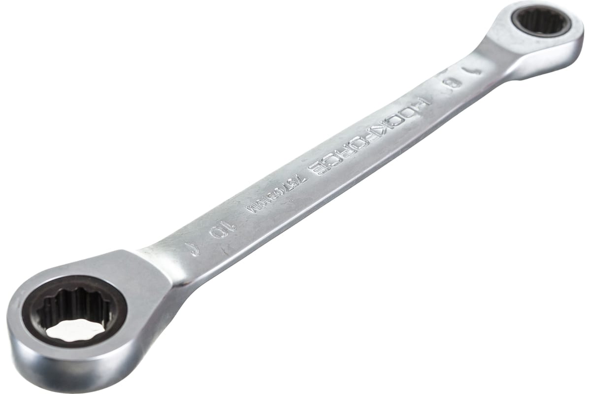 Накидной трещоточный ключ ROCKFORCE 8х10мм RF-7570810M подходит для безопасного демонтажа болтов и гаек. Инструмент имеет высокую прочность за счет утолщенных оснований головок.