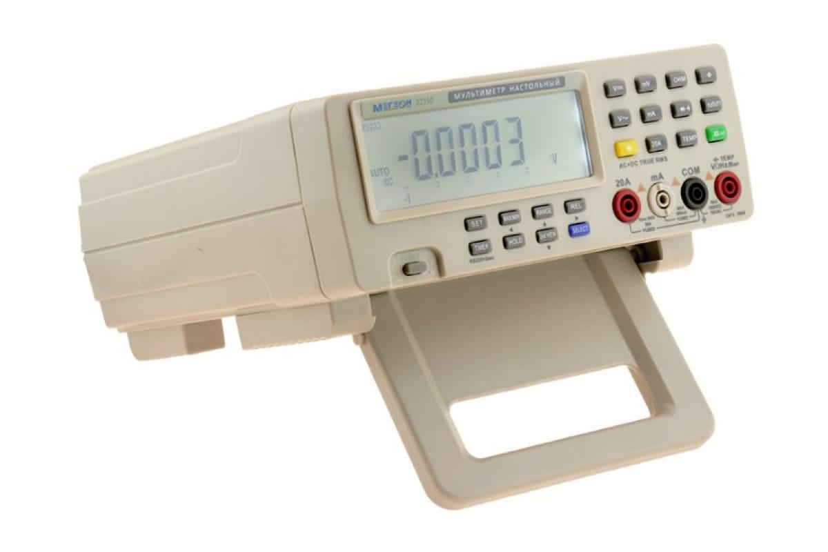 Настольный мультиметр МЕГЕОН 22150 надежен и практичен в эксплуатации. Предназначен для измерения напряжения, тока, сопротивления, емкости, частоты и температуры. Благодаря подсветке дисплея прибор облегчает считывание данных в плохоосвещенных местах. Для фиксирования полученных значений на экране предусмотрена функция HOLD.