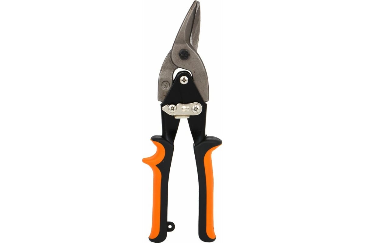 Ножницы по металлу ЕРМАК 250 мм, двухкомпонентная рукоятка, левый 599-097 имеют надежный рычажный механизм, который обеспечивает качественный ровный рез без применения дополнительных усилий со стороны пользователя. Острая режущая кромка отлично сохраняет заточку на протяжении длительного времени. Имеется надежный фиксатор для фиксации изделия в зажатом состоянии. Пластиковая двухкомпонентная рукоятка не выскальзывает из рук и имеет повышенную прочность.