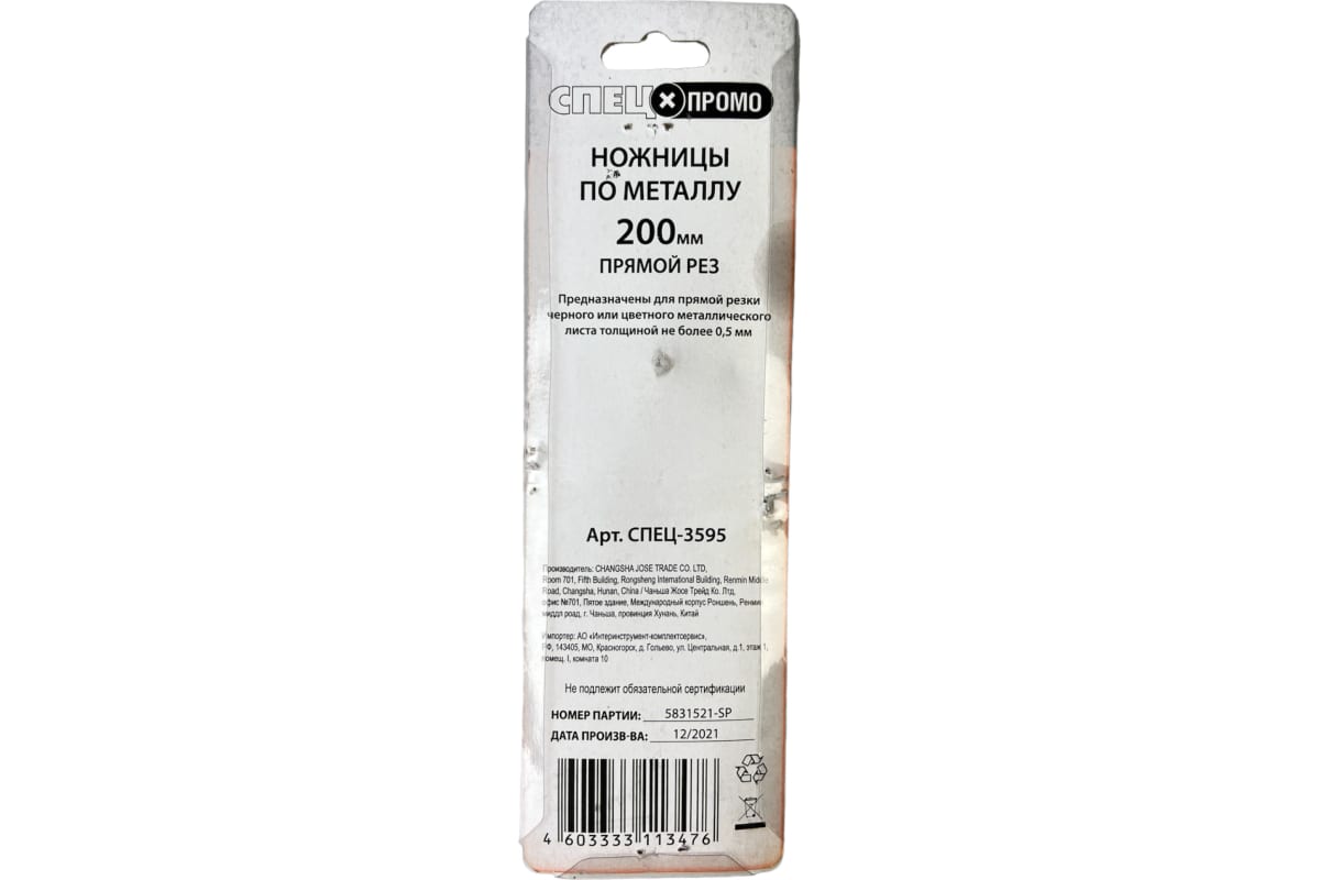 Ножницы по металлу Спец 200 мм, прямой рез СПЕЦ-3595 предназначены для резки листового металла. Цельнометаллическая конструкция ножниц отличается долговечностью и высокой прочностью. Остро наточенные режущие кромки обеспечивают высокое качество реза. Инструмент выполнен из качественной углеродистой стали.