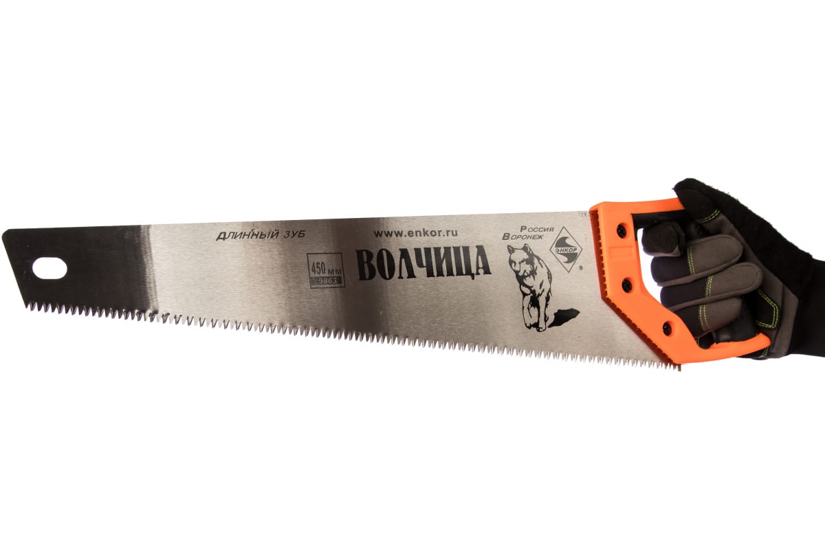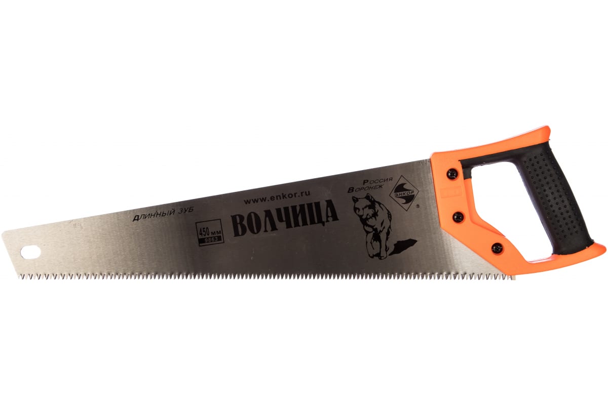 Ножовка 450 мм Энкор Волчица 9863 имеет остро заточенные 3-D зубья, поэтому выполняет качественное чистое пиление древесины. Состоит из прочного полотна, выполненного из стали 65 Mn, и пластиковой рукоятки с резиновой вставкой для предотвращения выскальзывания из рук. Ножовку удобно хранить в подвешенном состоянии.